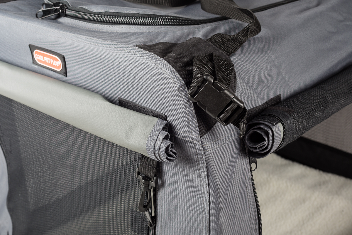 Skládací textilní domeček COOL PET PLUS je kvalitní český výrobek s pevnou vnitřní ocelovou konstrukcí, velmi lehký na nošení a jednoduché skládání/rozkládání. Vnitřní rám z ocele zaručuje dlouhou životnost a ochranu vašeho psa. Úchyty sloužící k protažení bezpečnostními pásy zvyšují bezpečnost vašeho psa. Domeček může být stejně tak umístěn na zadních sedadlech. Speciální pevná tkanina, odolná síťovina je použita ve všech oknech a vchodech - jeden ze předu, druhý z boku. Vchody i okna je možné zatemnit roletkou ze stejného materiálu, jako je celý box. Zátěžové zipy zajišťují jednoduchou manipulaci a dlouhou trvanlivost. Vodě odolný základ chrání před vlhkosti např. z mokré trávy neprosákne dovnitř. Ideální na přepravu psů a koček do auta, na cesty, výstavy, dovolenou i na domácí použití. Složený box je umístěn v tašce na přenos. Doporučujeme dokoupit matraci, podložku v sekci matrace pro psy, která je měkká, pohodlná, 3 cm nebo 5cm silná, může se vysvléci a prát, povrch je vodě odolný, různé barvy a materiály - eko kůže, Oxford materiál a další, kvalitní výrobek COOL PET.