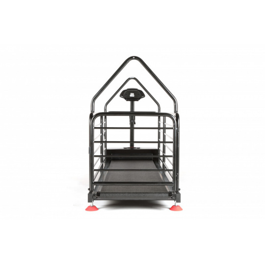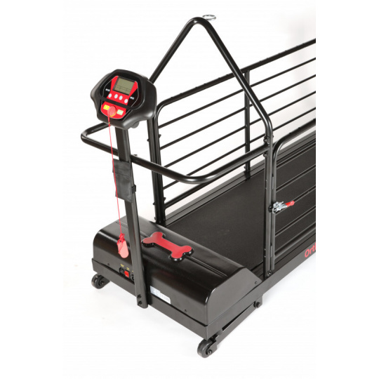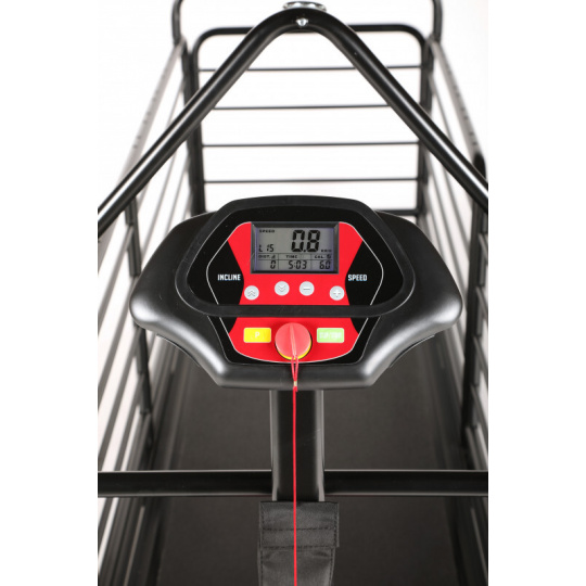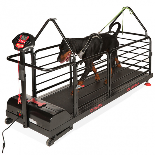 Běžecký pás vytvořený přímo pro majitele, kteří chtějí svému psovi dopřát maximální komfort při pohybu (např. při rehabilitaci). Speciální odpružení účinně tlumí nárazy, výkonný motor pracuje pozoruhodně tiše, ovládání máte pohodlně v ruce. Sklon se nastavuje automaticky, pes nastupuje i sestupuje bez problémů díky bočnímu vstupu. Tři vrstvy odolného laku chrání povrch před škrábanci i korozí.