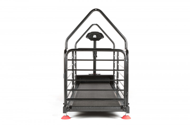 Běžecký pás vytvořený přímo pro majitele, kteří chtějí svému psovi dopřát maximální komfort při pohybu (např. při rehabilitaci). Speciální odpružení účinně tlumí nárazy, výkonný motor pracuje pozoruhodně tiše, ovládání máte pohodlně v ruce. Sklon se nastavuje automaticky, pes nastupuje i sestupuje bez problémů díky bočnímu vstupu. Tři vrstvy odolného laku chrání povrch před škrábanci i korozí.