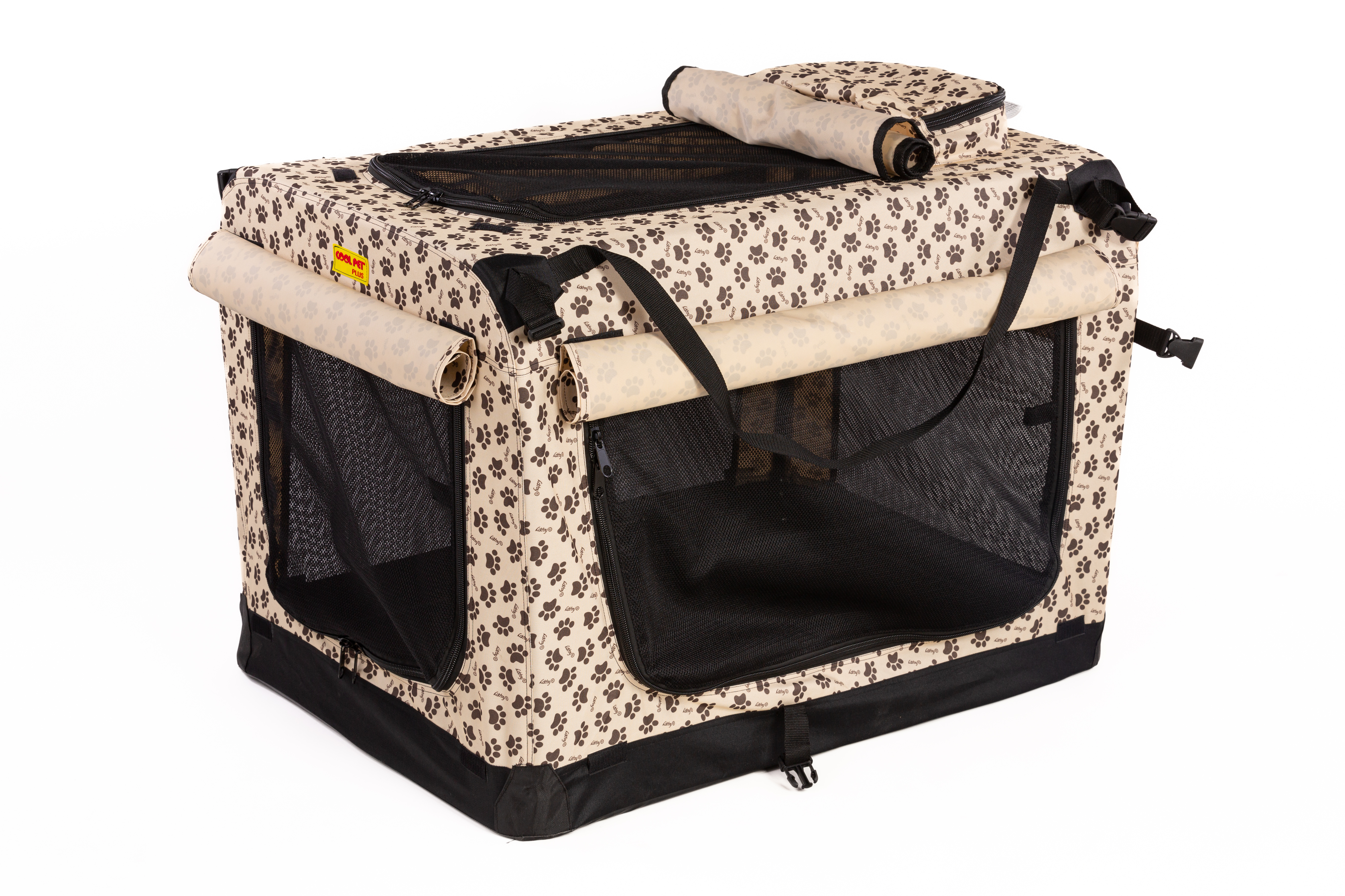 COOL PET Plus béžová/hnědé tlapky kennelka velikost přepravního boxu: M 60*42*42cm