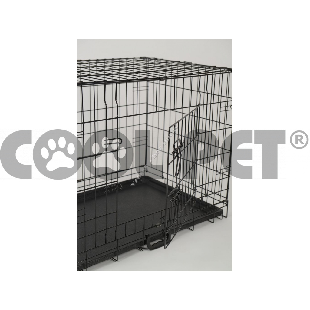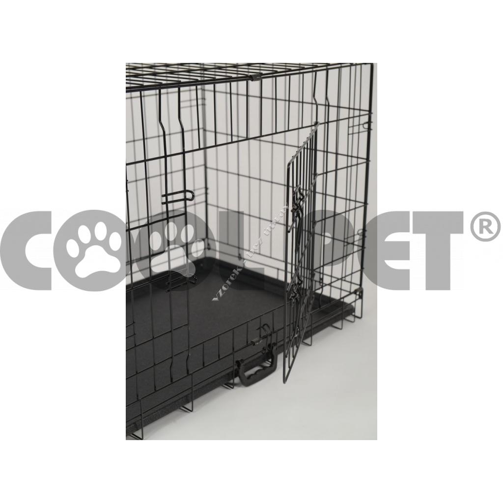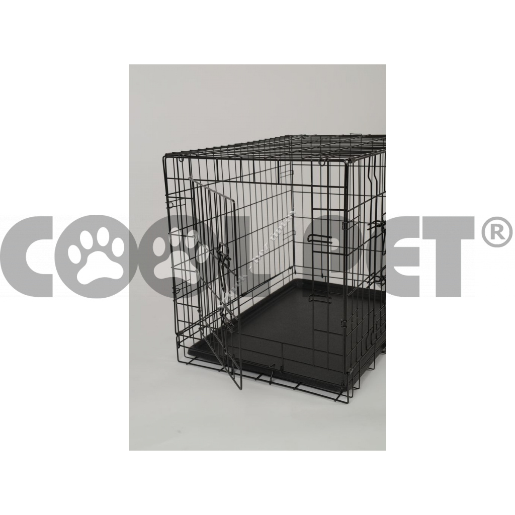 Přepravní či výstavní klec pro psy, železná s černým nátěrem, pevná. Vhodná také jako příležitostní domácí klec. Klec má dva vchody a snadno se složí a odnese.