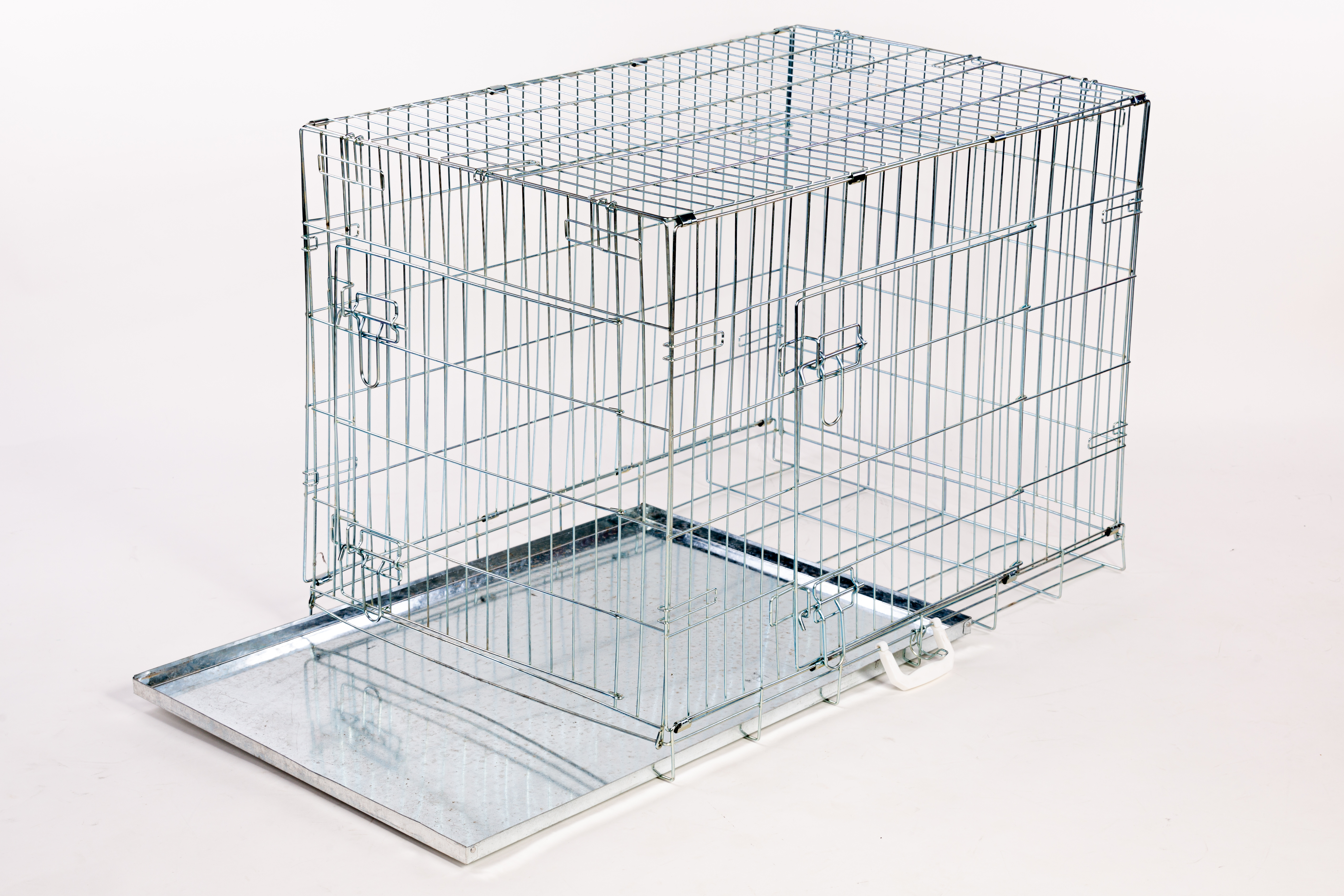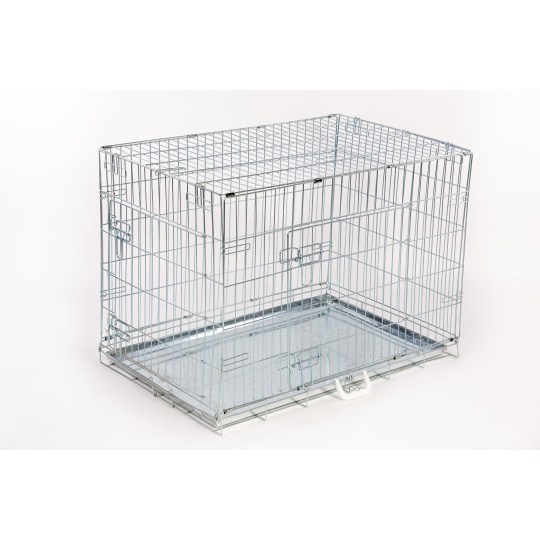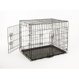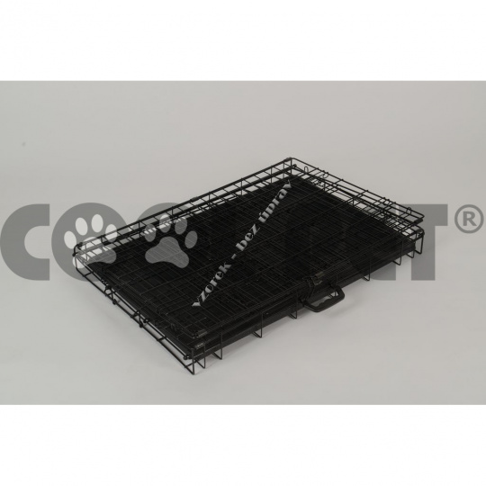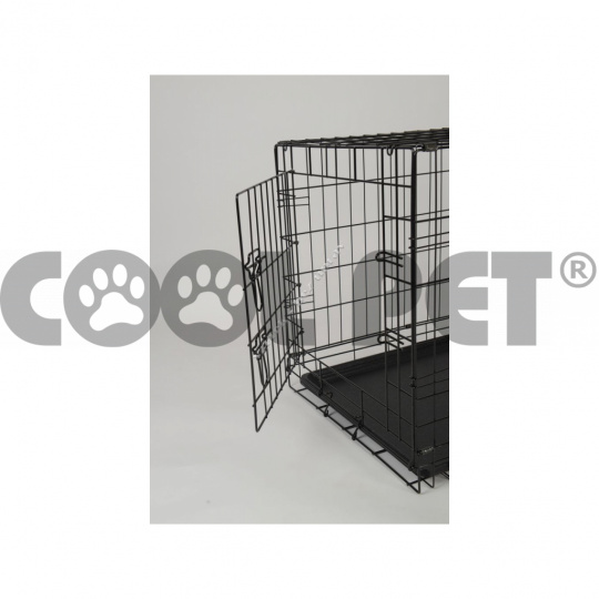 Přepravní či výstavní klec pro psy, železná s černým nátěrem, pevná. Vhodná také jako příležitostní domácí klec. Klec má dva vchody a snadno se složí a odnese.