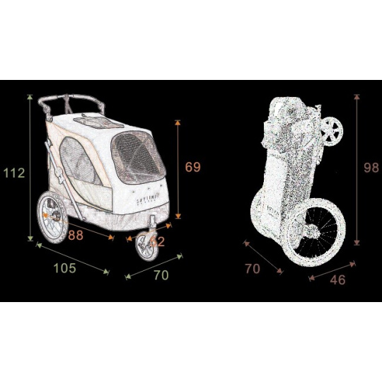 | Rozměry složeného vozíku (s koly) | 98 × 70 × 46 cm |