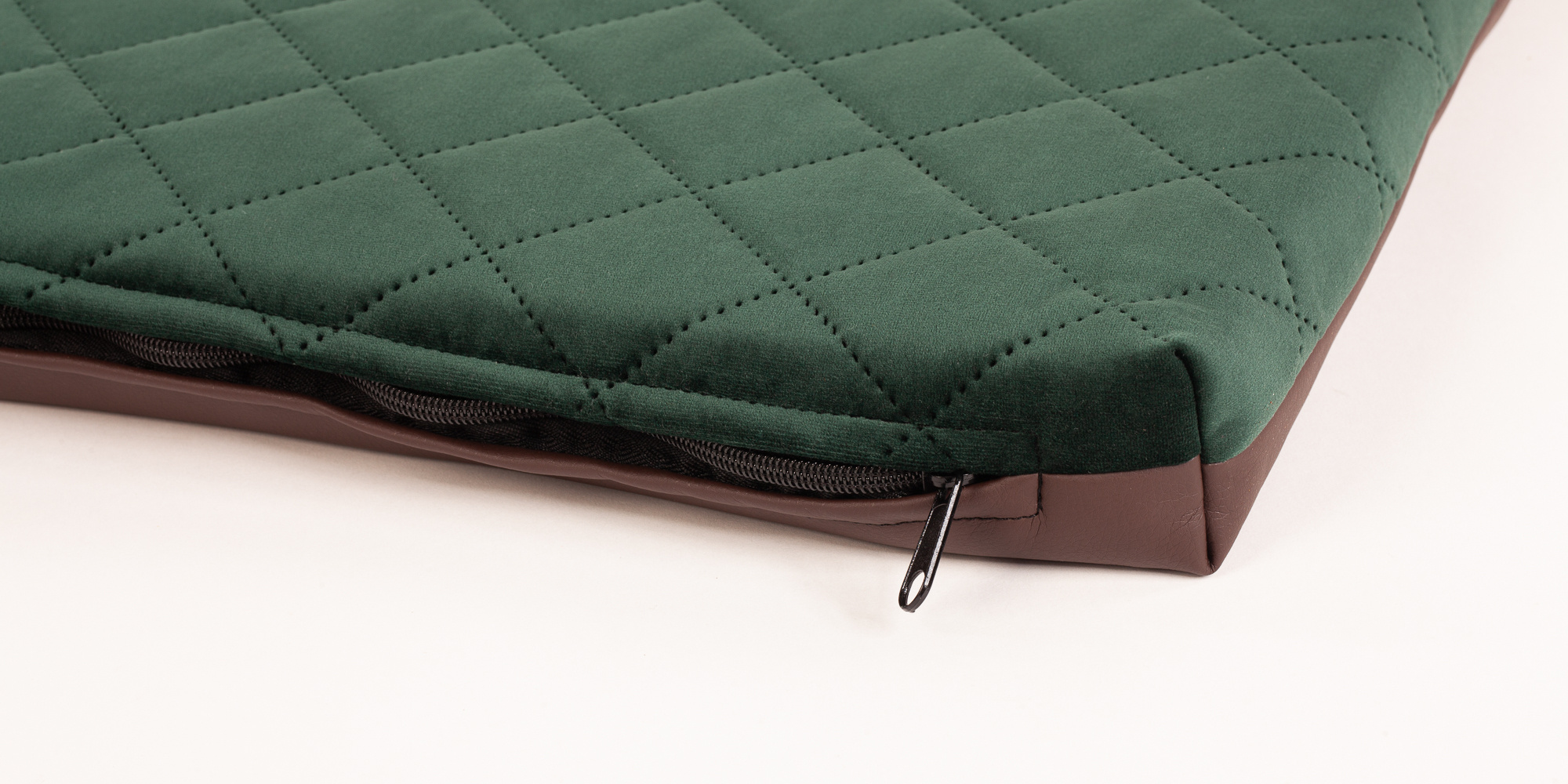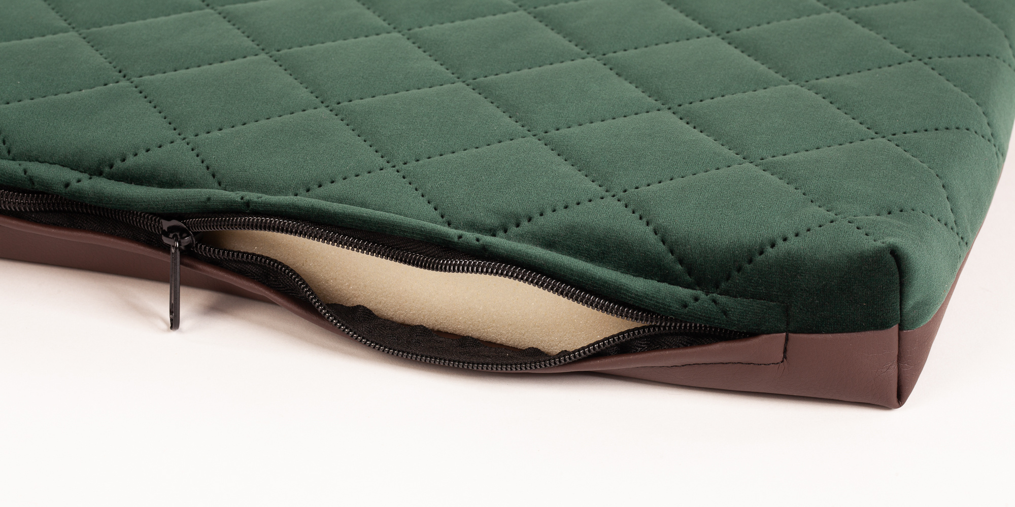 Ortopedický pelíšek - prošívaný velur zelená materiál/hnědá eko kůže
