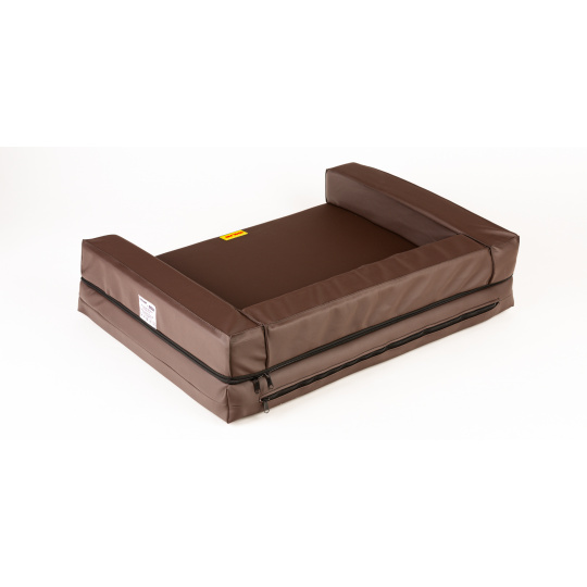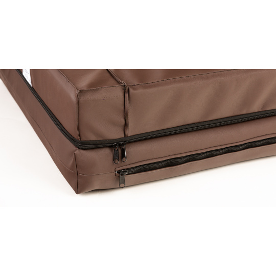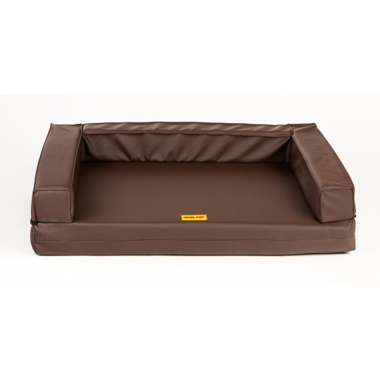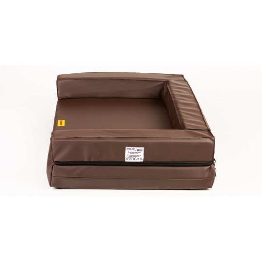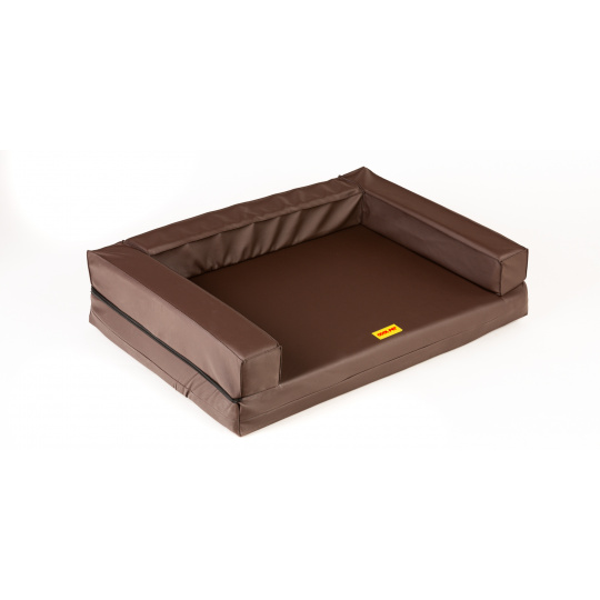 Ortopedický pelíšek, polstrovaný okraj - hnědá eko kůže