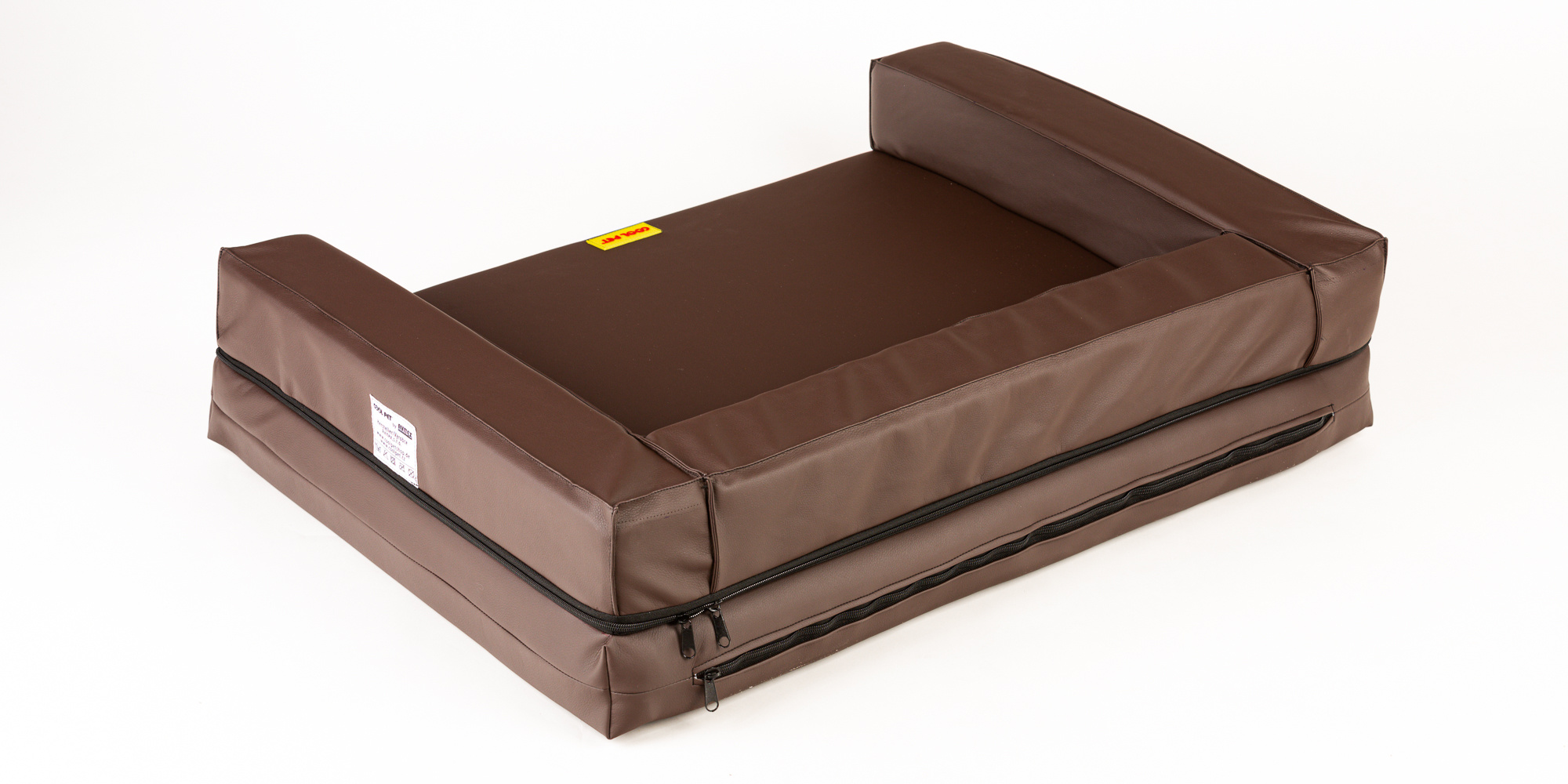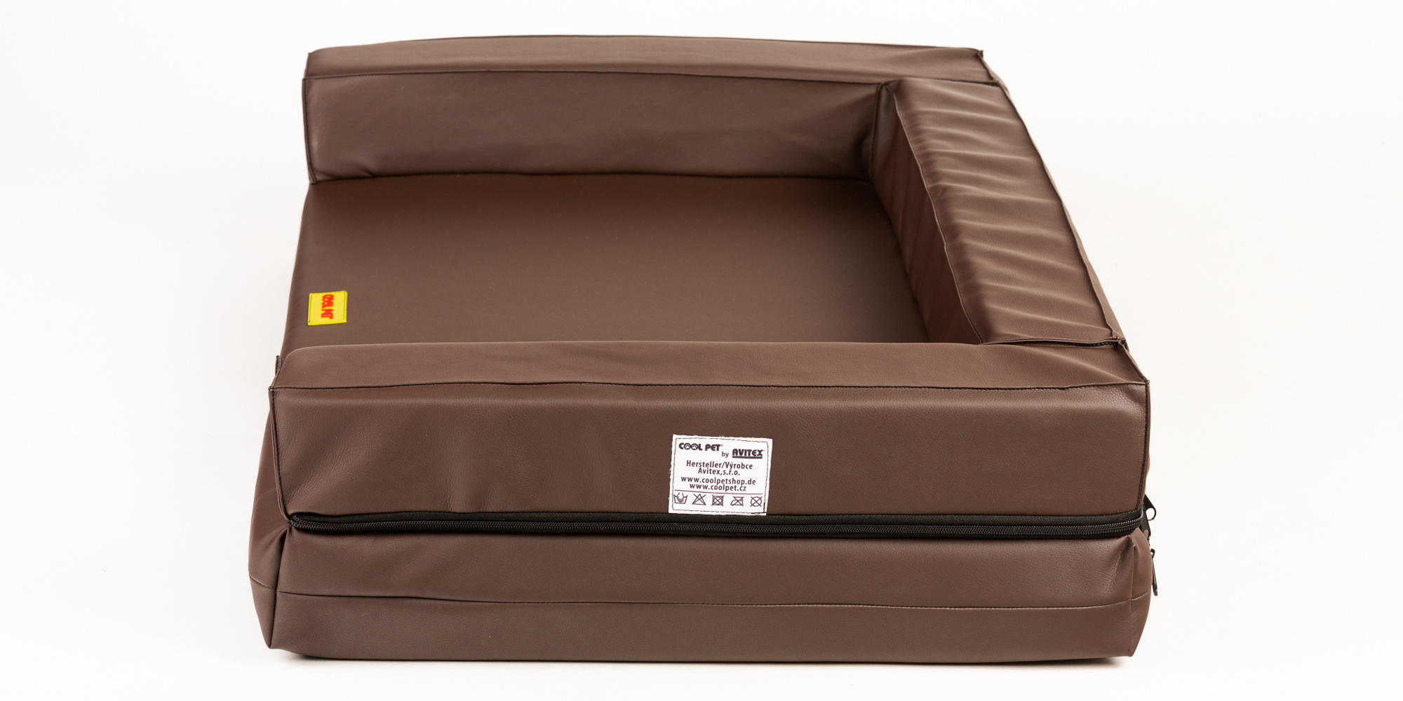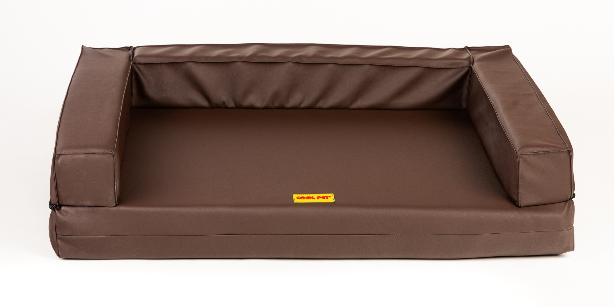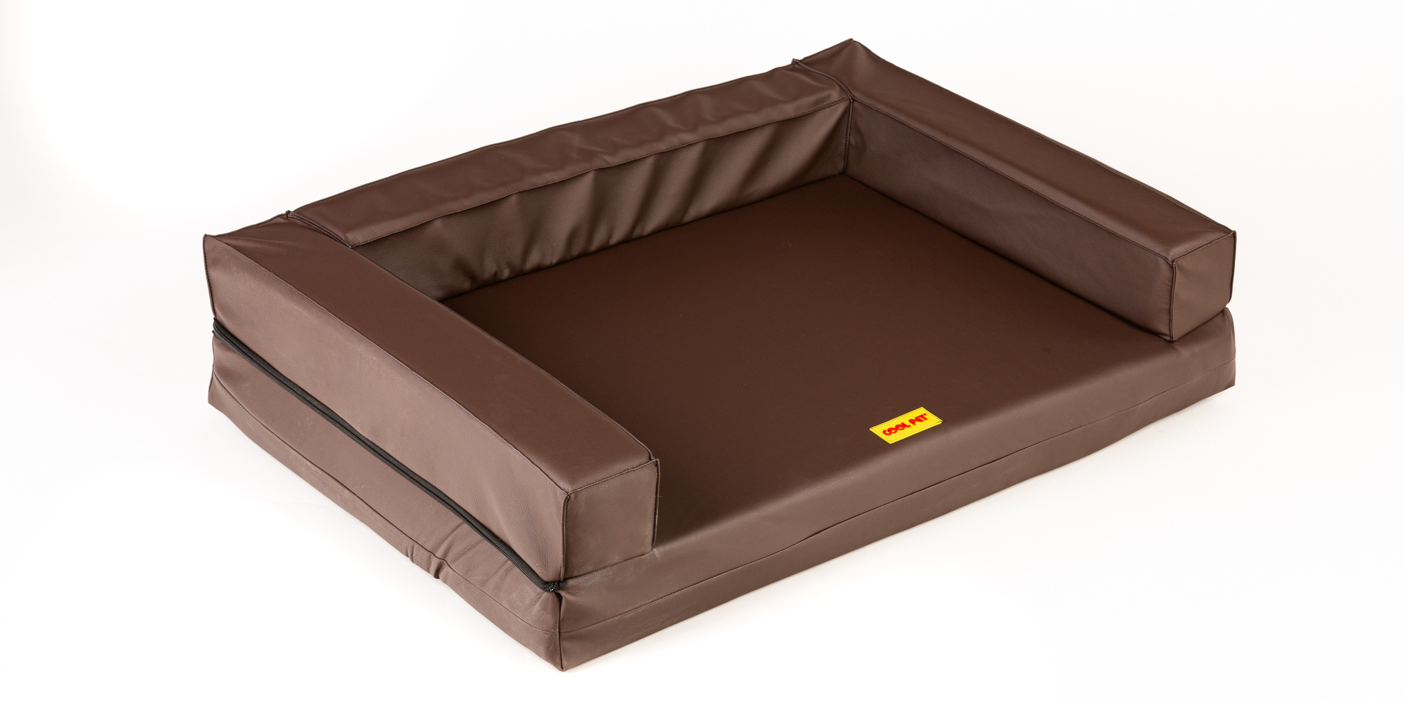 Ortopedický pelíšek, polstrovaný okraj - hnědá eko kůže