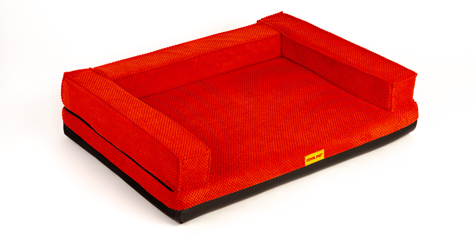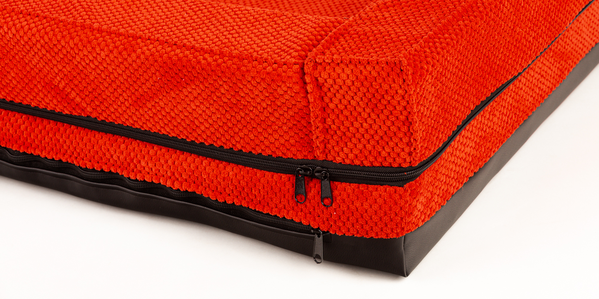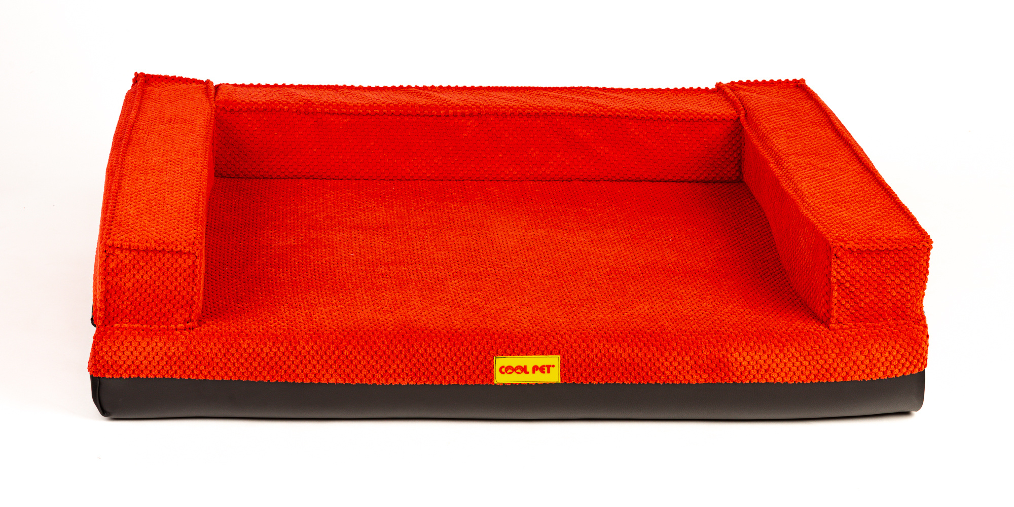 Ortopedický pelíšek, polstrovaný okraj - červený velur/červená eko kůže