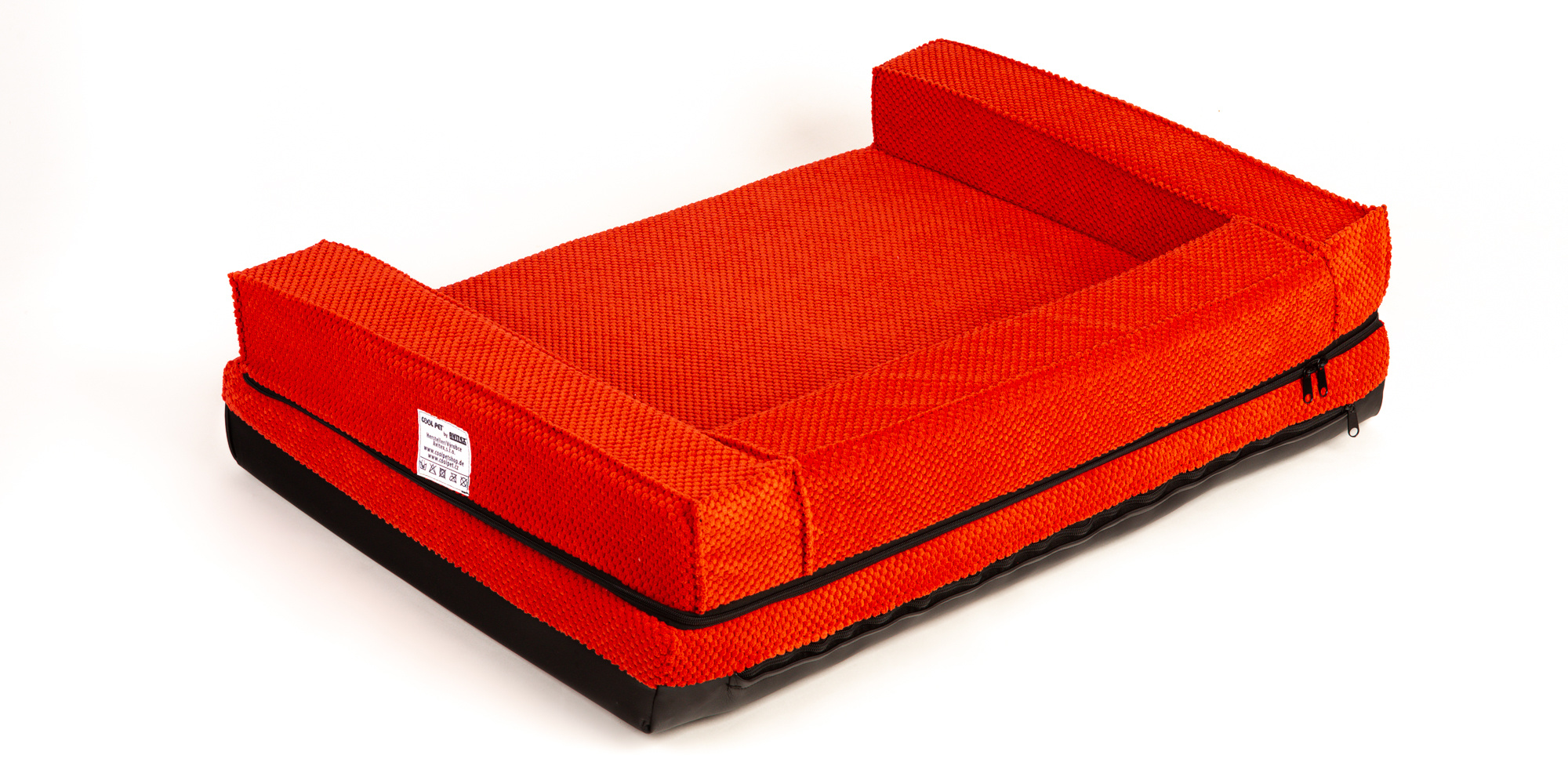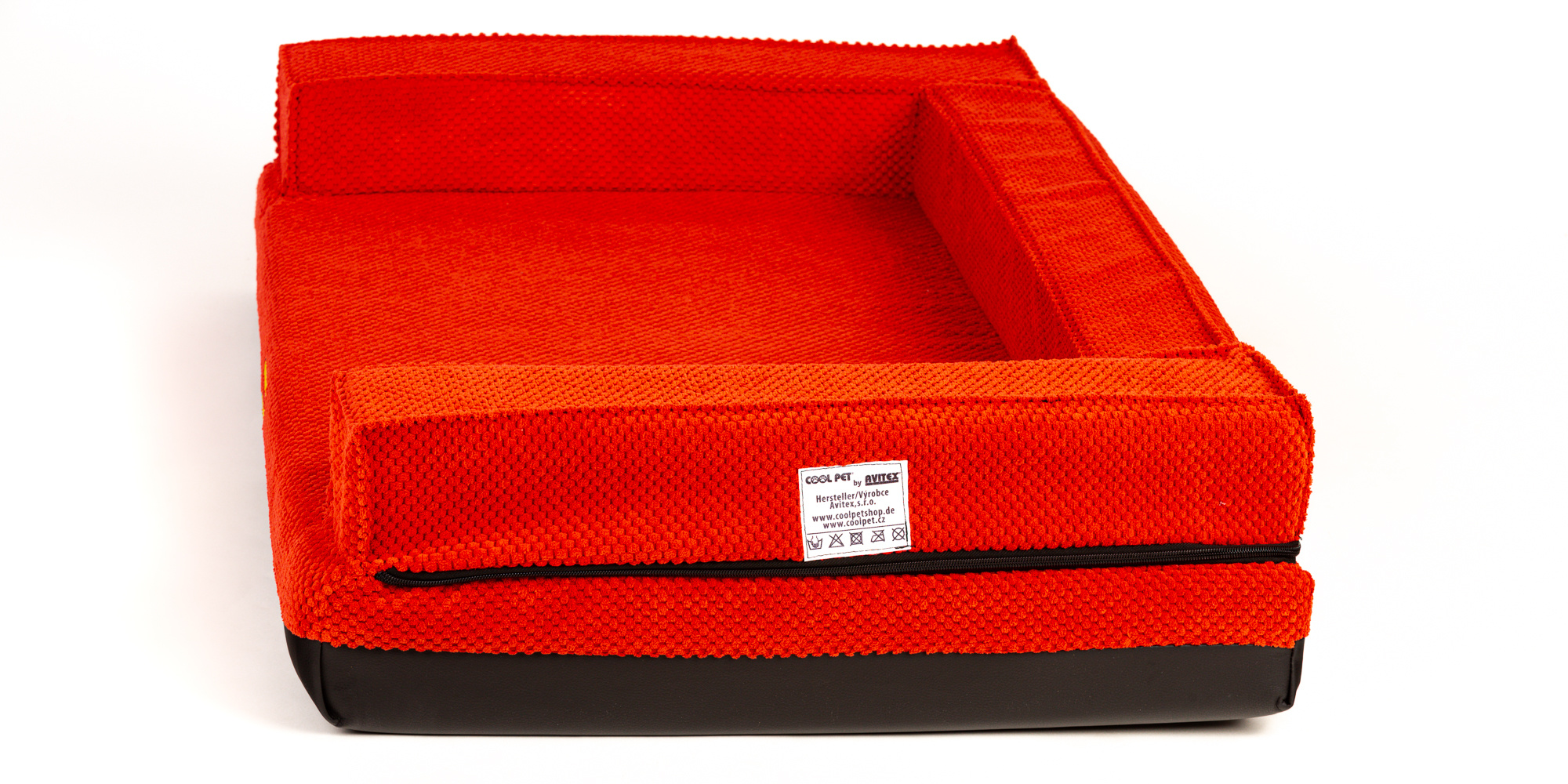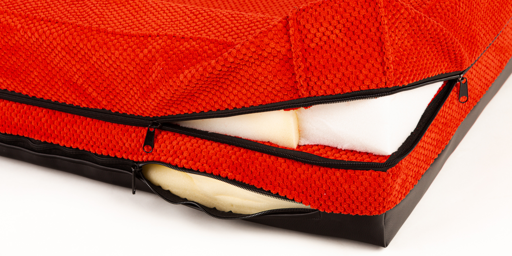 Ortopedický pelíšek, polstrovaný okraj - červený velur/červená eko kůže