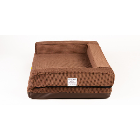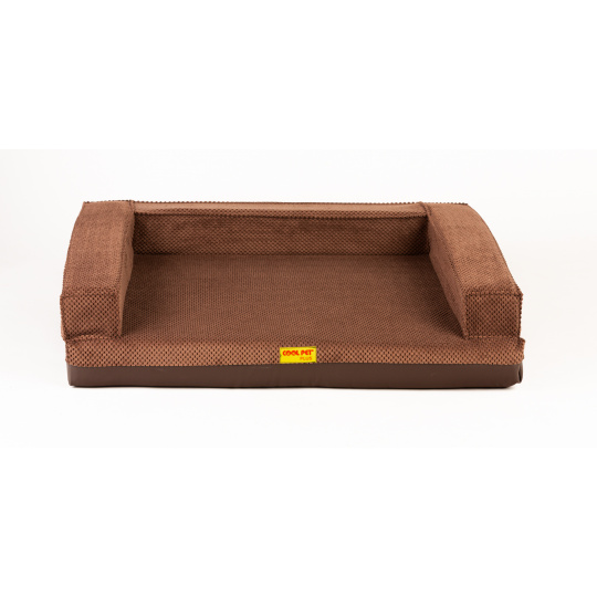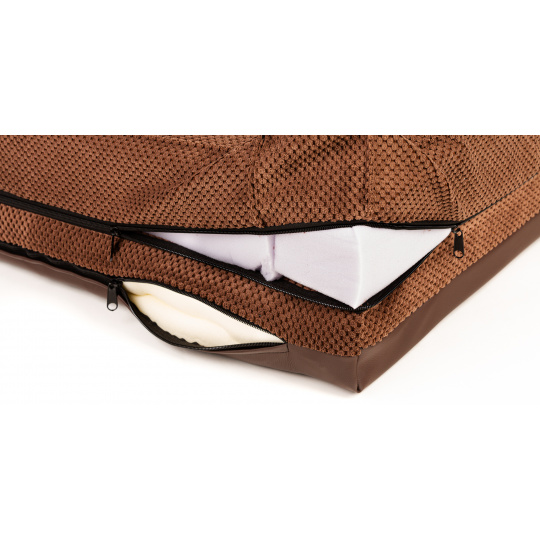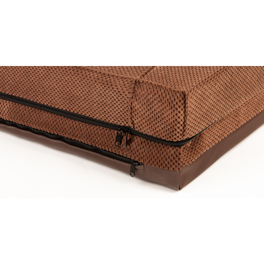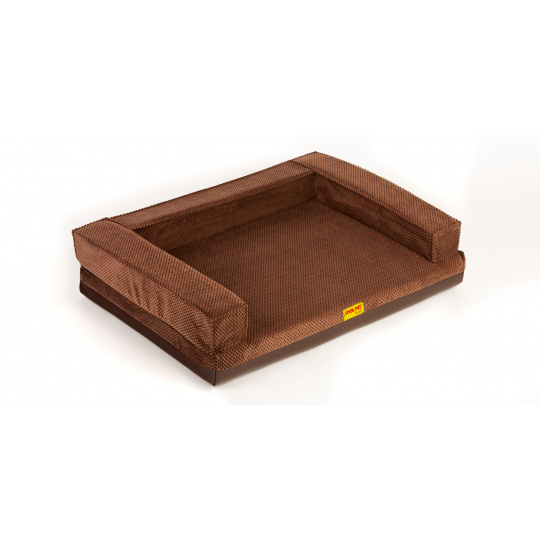 Ortopedický pelíšek, 5 velikostí, polstrovaný okraj 10cm vysoká paměťová pěna hnědý velur/hnědá eko kůže