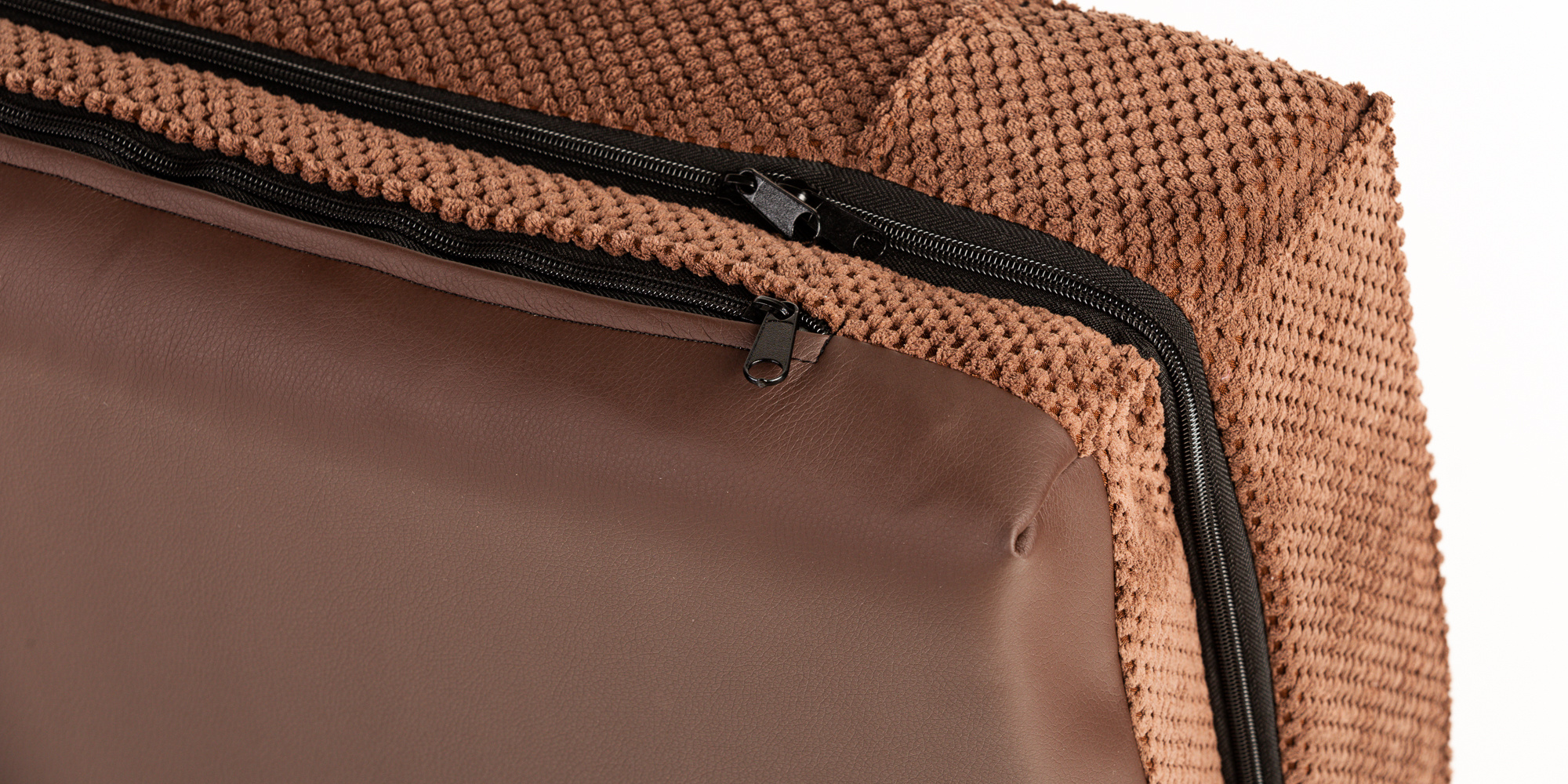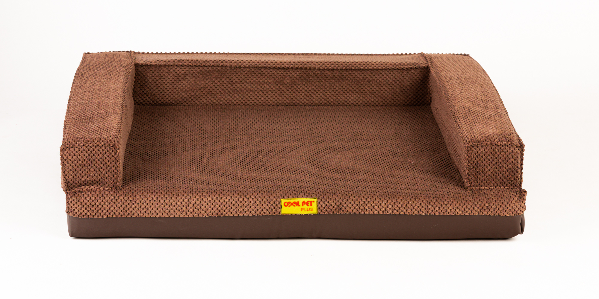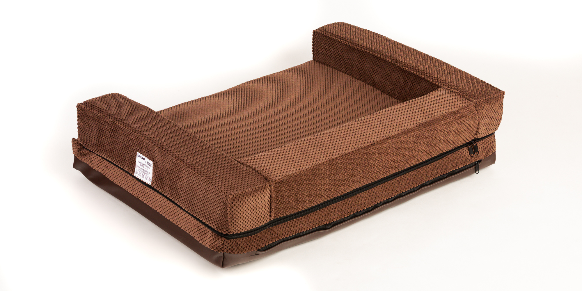 Ortopedický pelíšek, 5 velikostí, polstrovaný okraj 10cm vysoká paměťová pěna hnědý velur/hnědá eko kůže