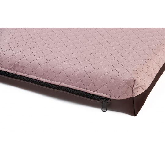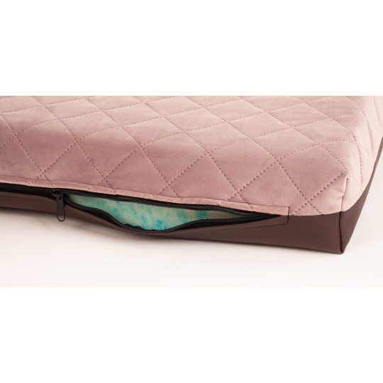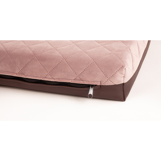 Ortopedický pelíšek - prošitý velur starorůžová/spodek hnědá eko kůže
