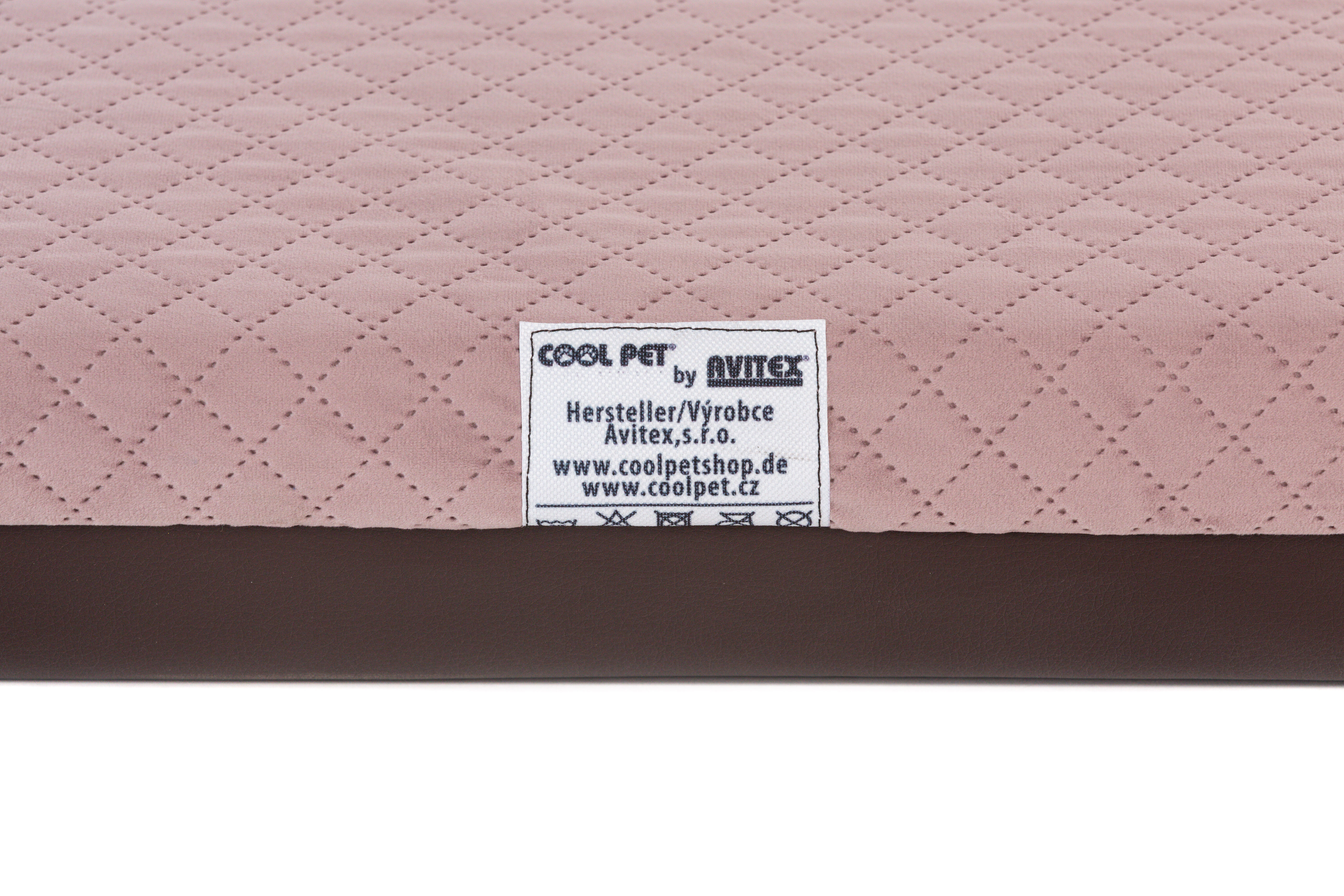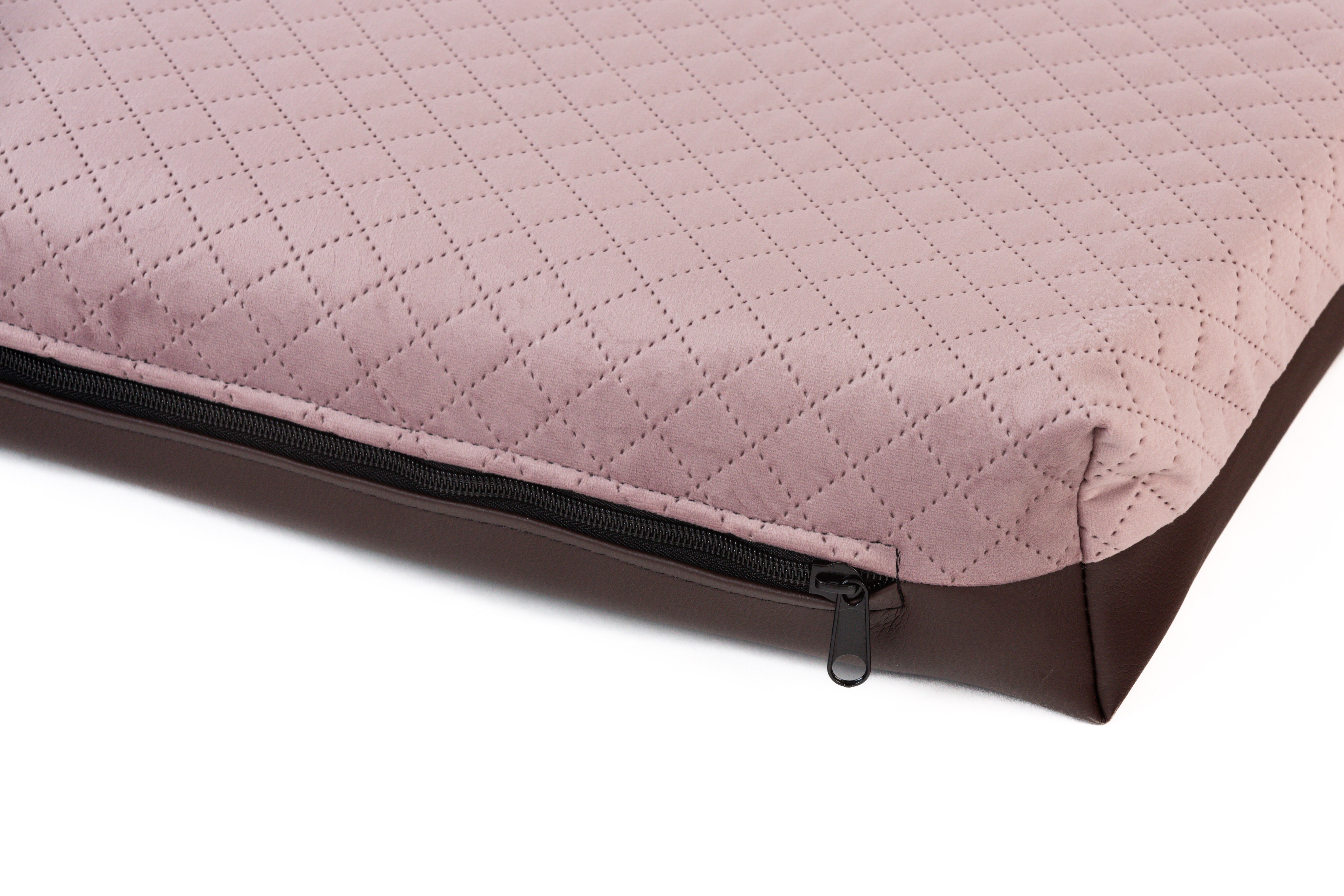 Ortopedický pelíšek - prošitý velur starorůžová/spodek hnědá eko kůže