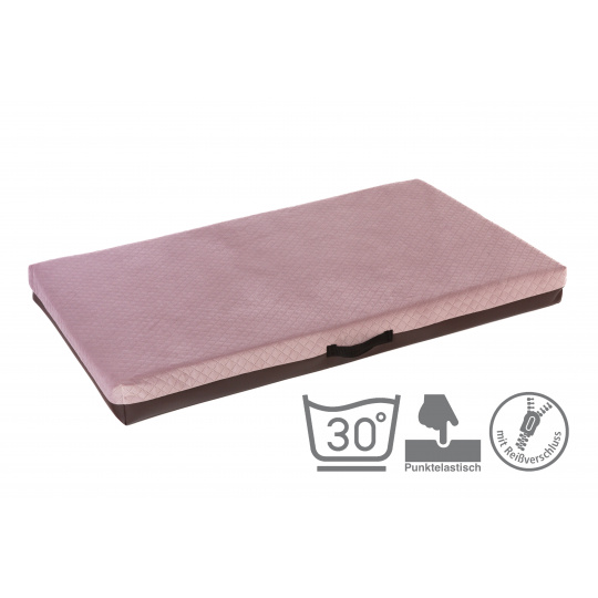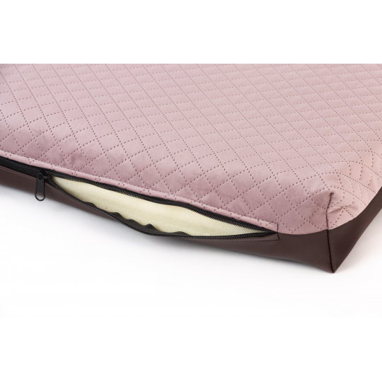 Pelech prošitý velur starorůžová, spodek hnědá ekokůže Velikost matrací: 50x35cm
