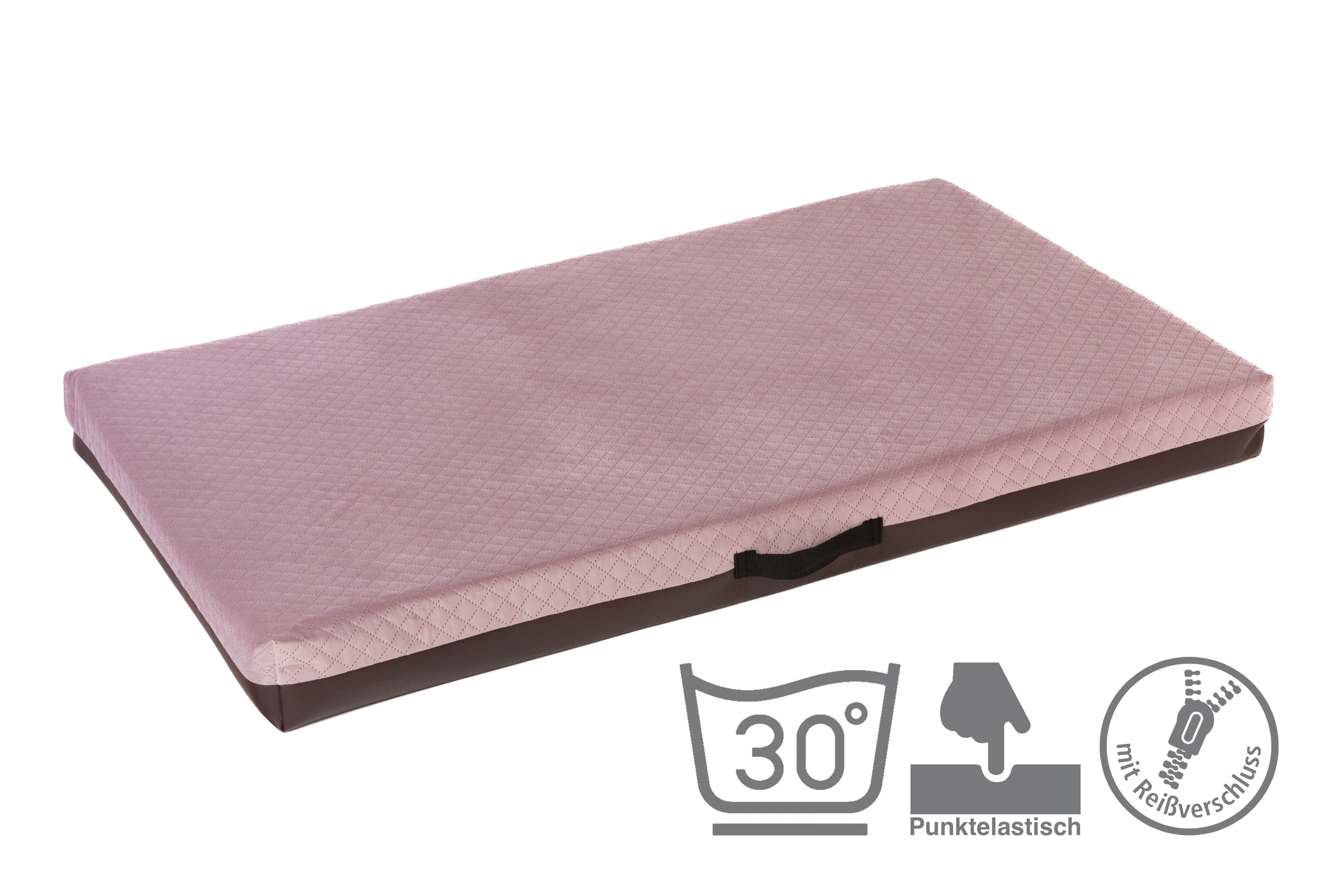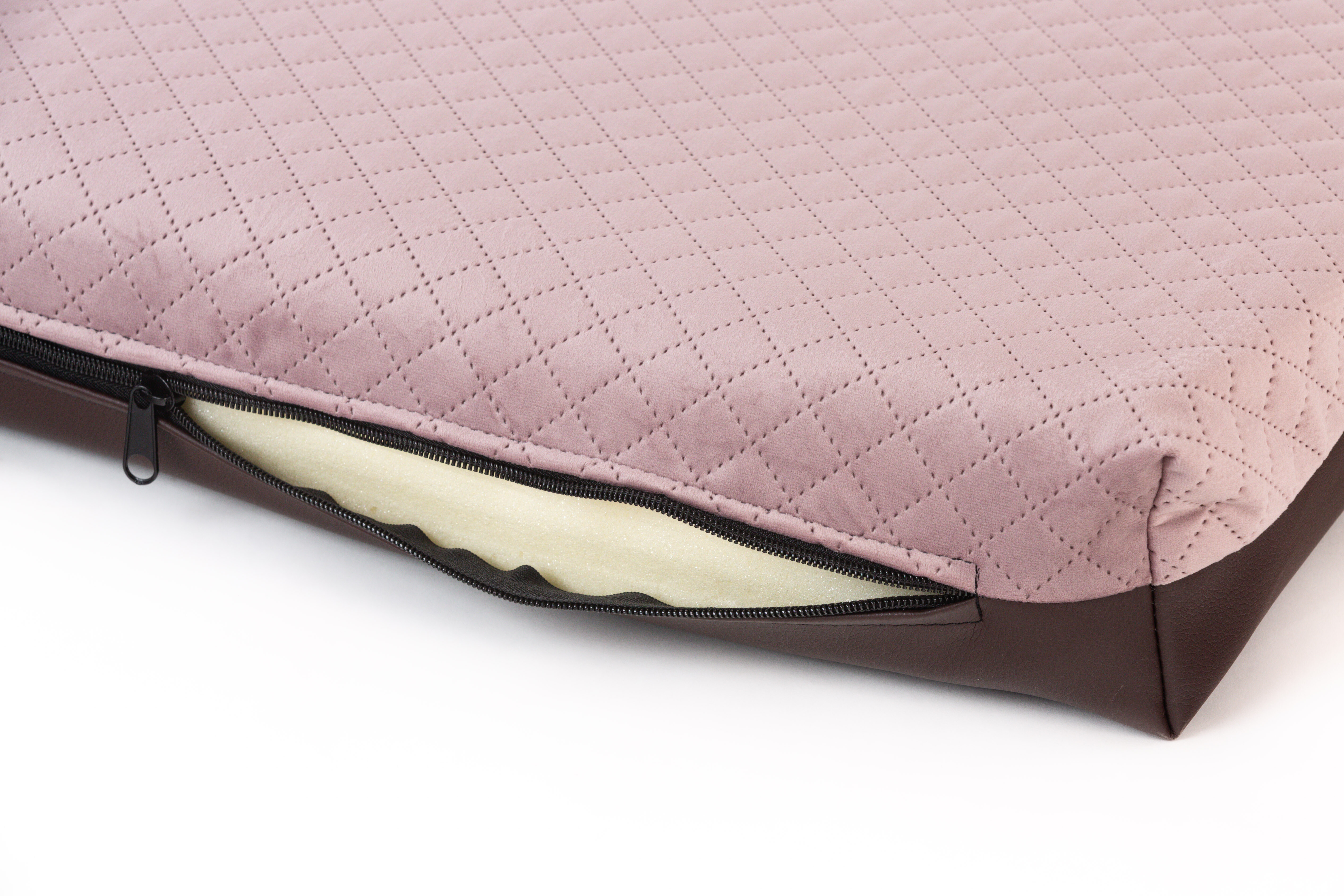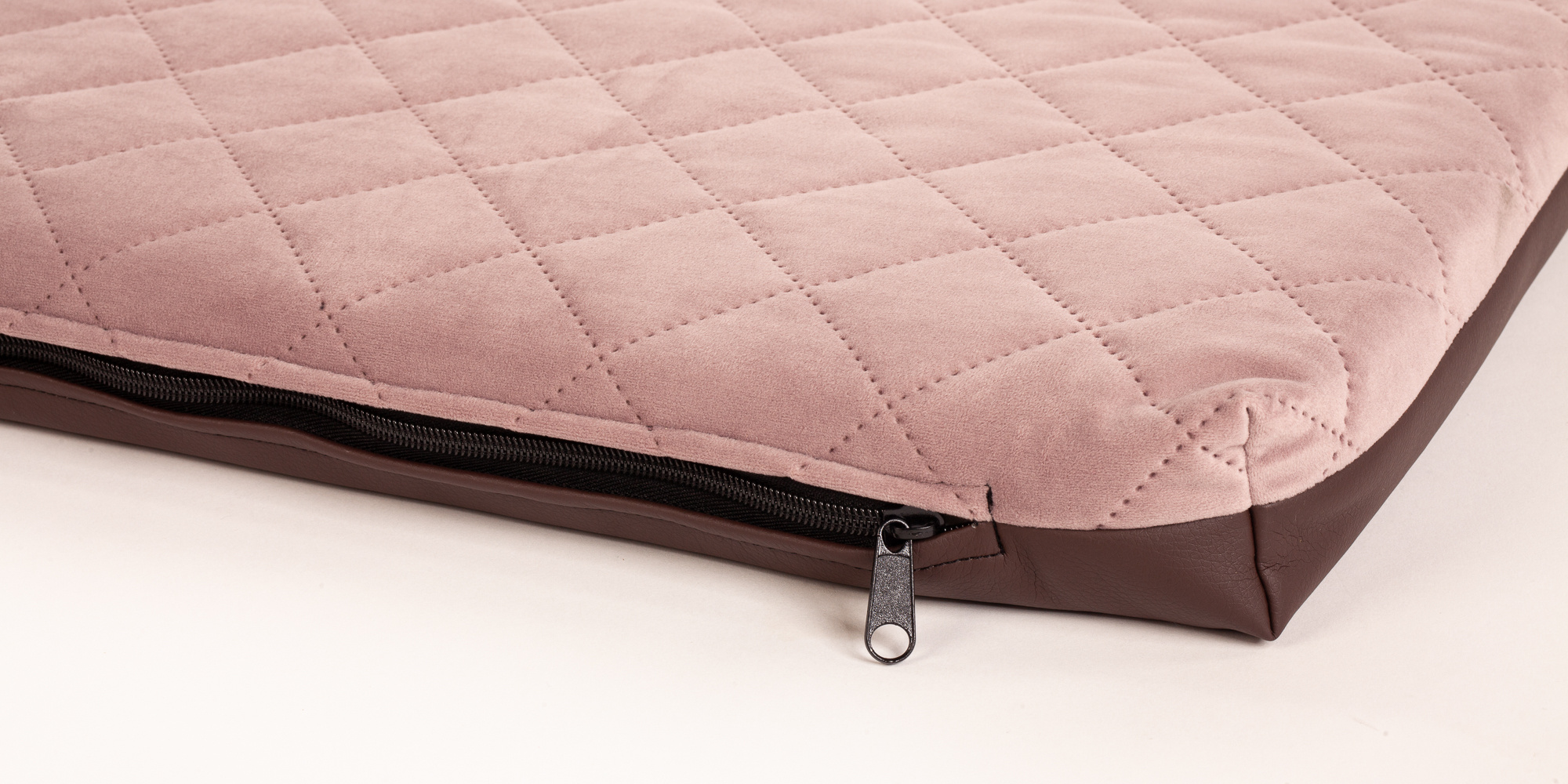 Pelech prošitý velur starorůžová, spodek hnědá ekokůže Velikost matrací: 50x35cm