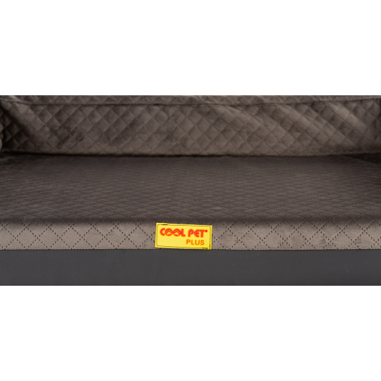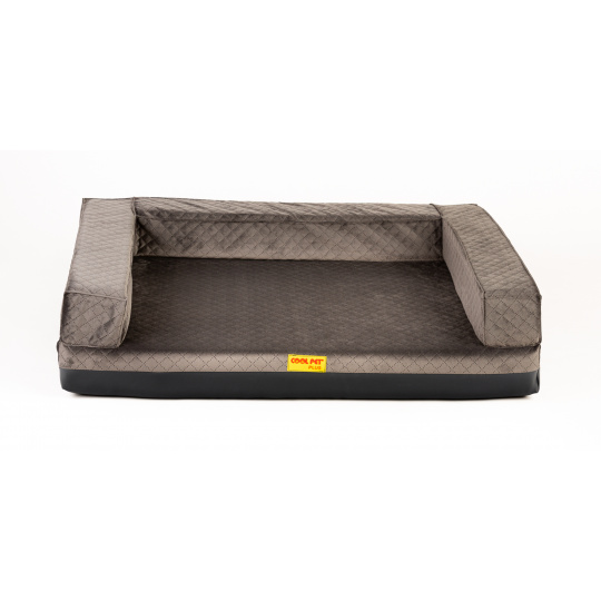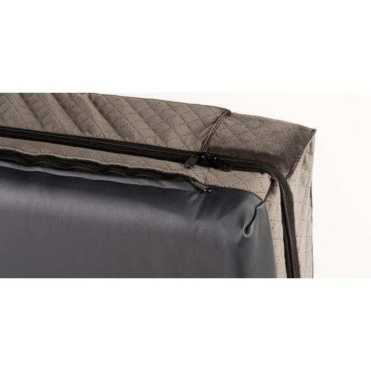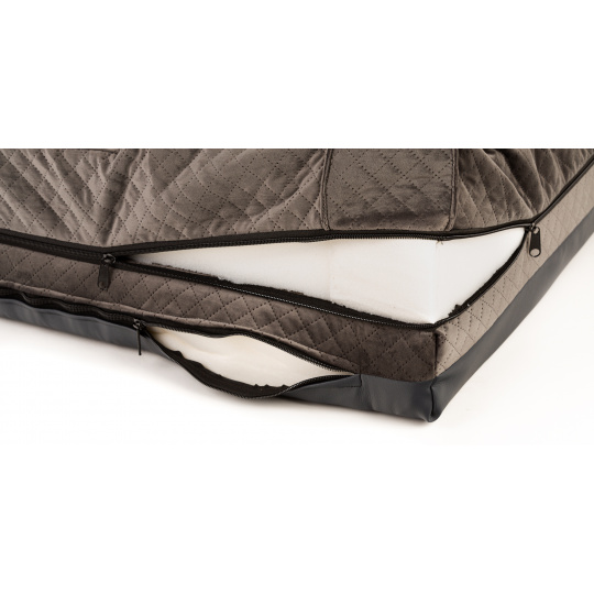 Ortopedický pelíšek s polstrovaným okrajem - prošívaný velur popelavě černá/eko kůže černá