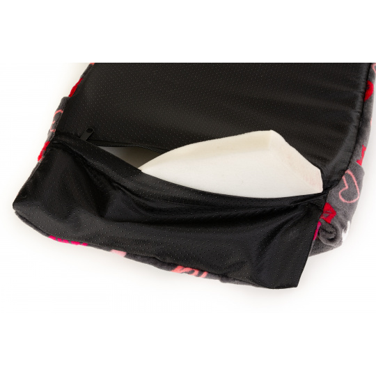 Pelíšek - "pantofel" šedá/červená srdce Velikost matrací: 68x50cm