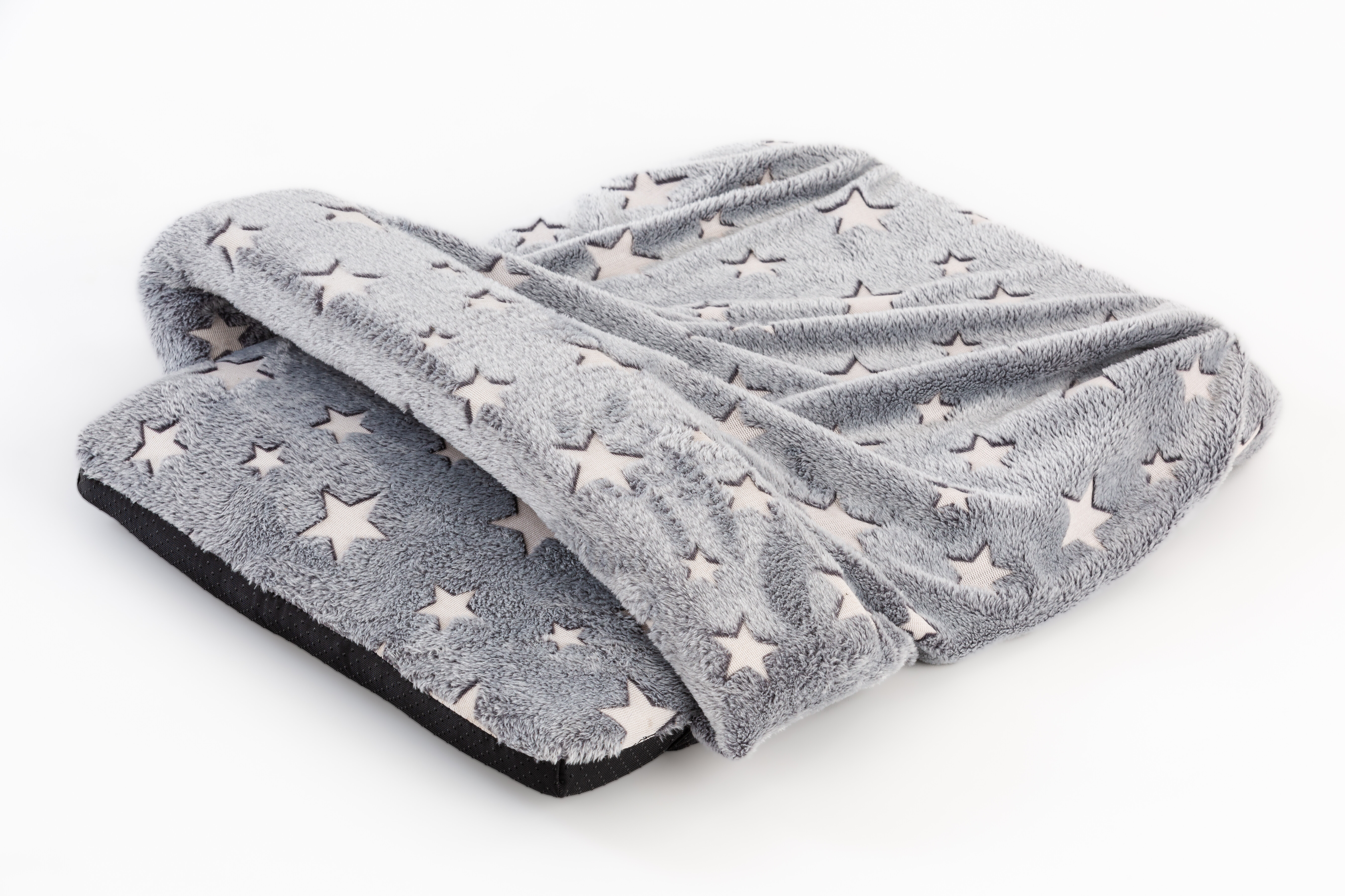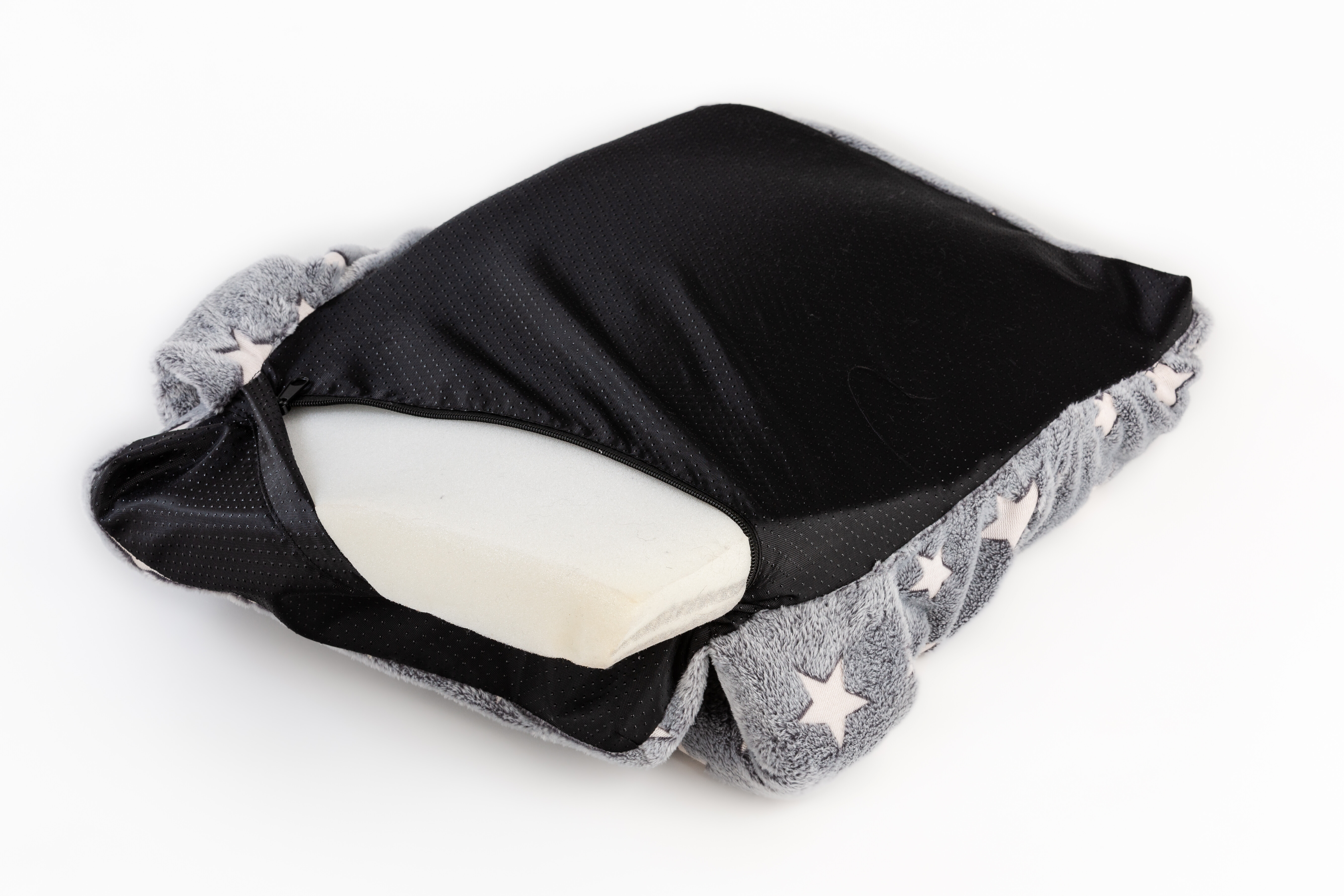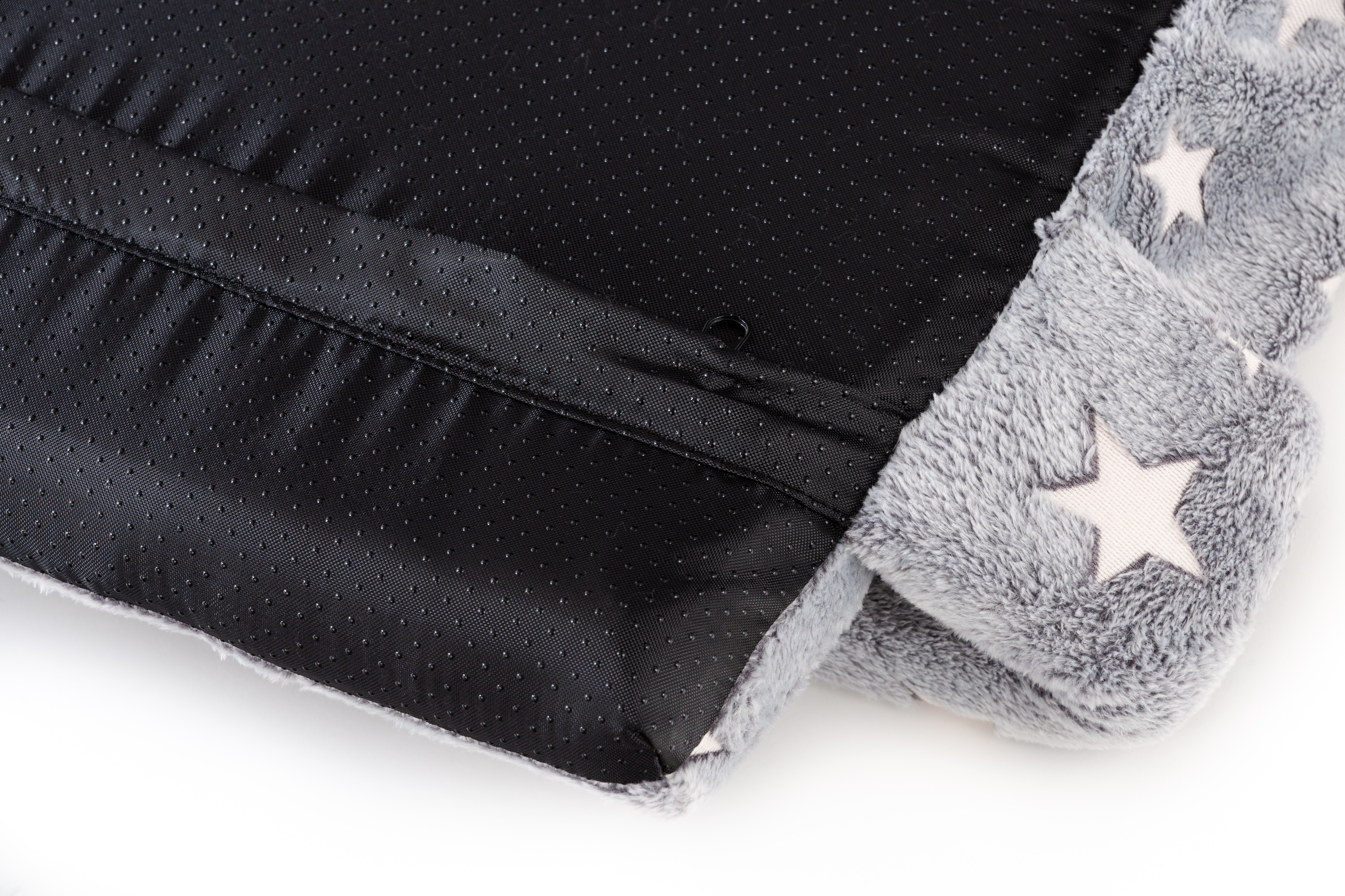 Pelíšek - "pantofel" šedá/bílé hvězdy Velikost matrací: 58x40cm