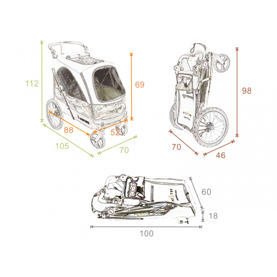 | Rozměry složeného vozíku (s koly) | 98 × 70 × 46 cm |