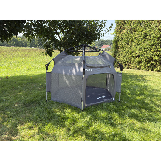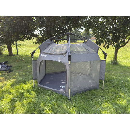 Lehký a velice skladný stan PETY je jasnou volbou pro ty, kteří se svým pejskem cestují, jezdí na výstavy, soutěže a nebo s ním jen rádi tráví čas venku na zahradě.