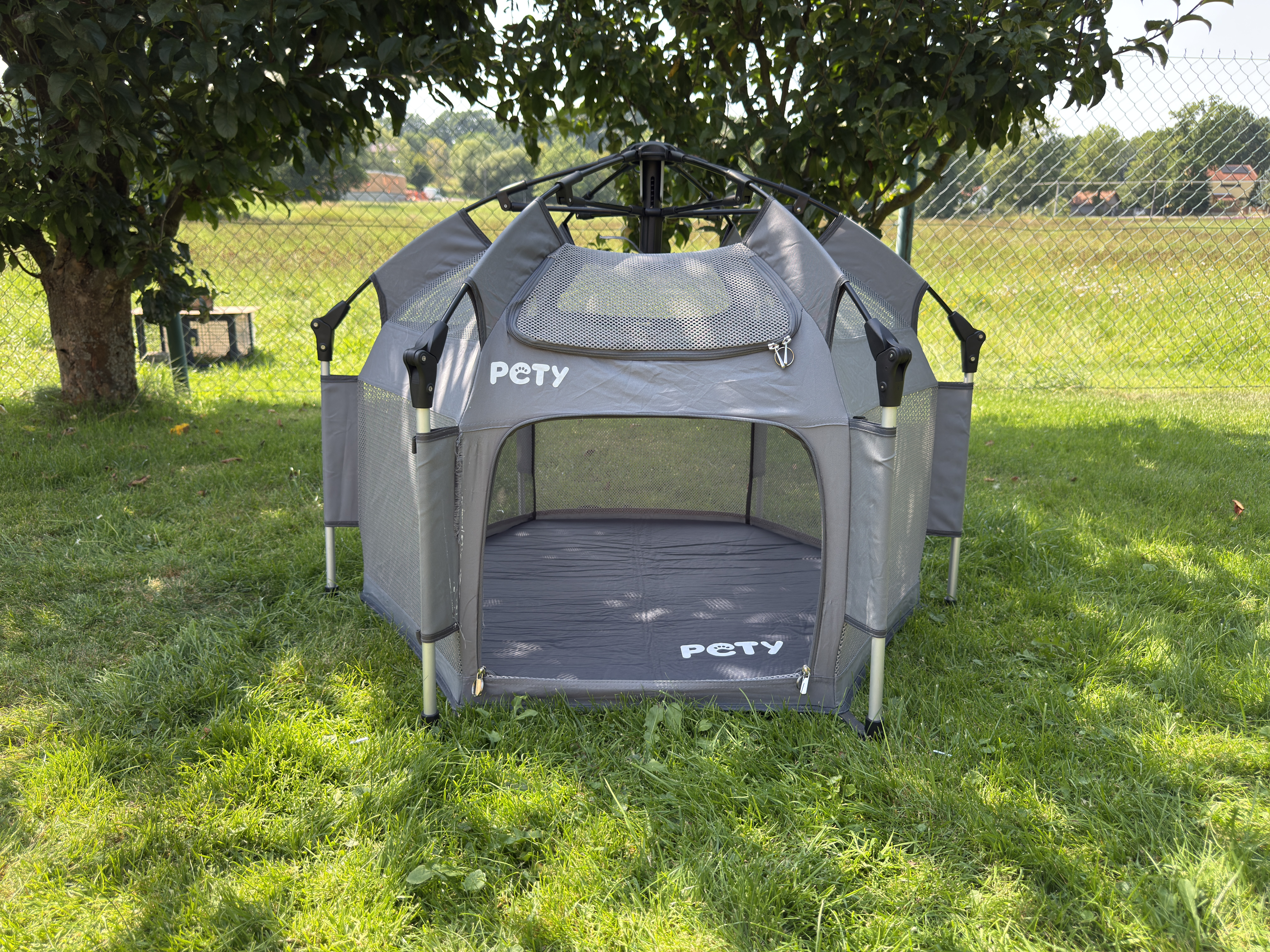 Lehký a velice skladný stan PETY je jasnou volbou pro ty, kteří se svým pejskem cestují, jezdí na výstavy, soutěže a nebo s ním jen rádi tráví čas venku na zahradě.