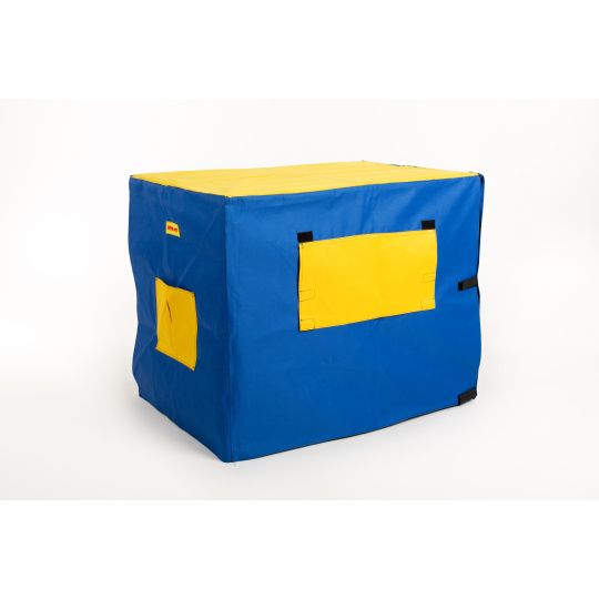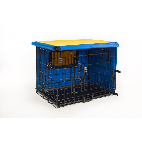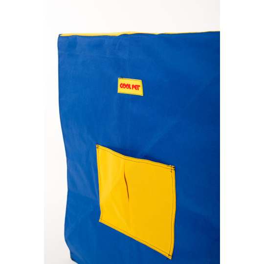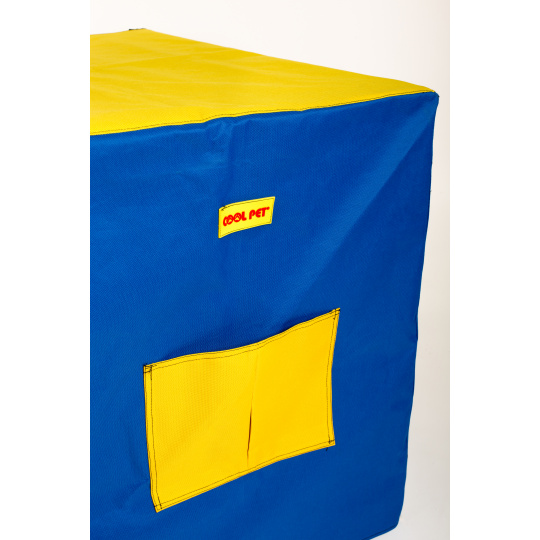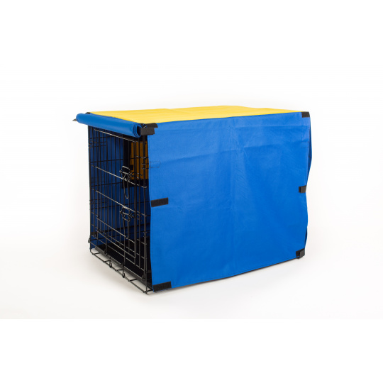 Potah na přepravní klec kombinace MODRÁ/ŽLUTÁ Velikost klecí: XS 45x33x40,5cm