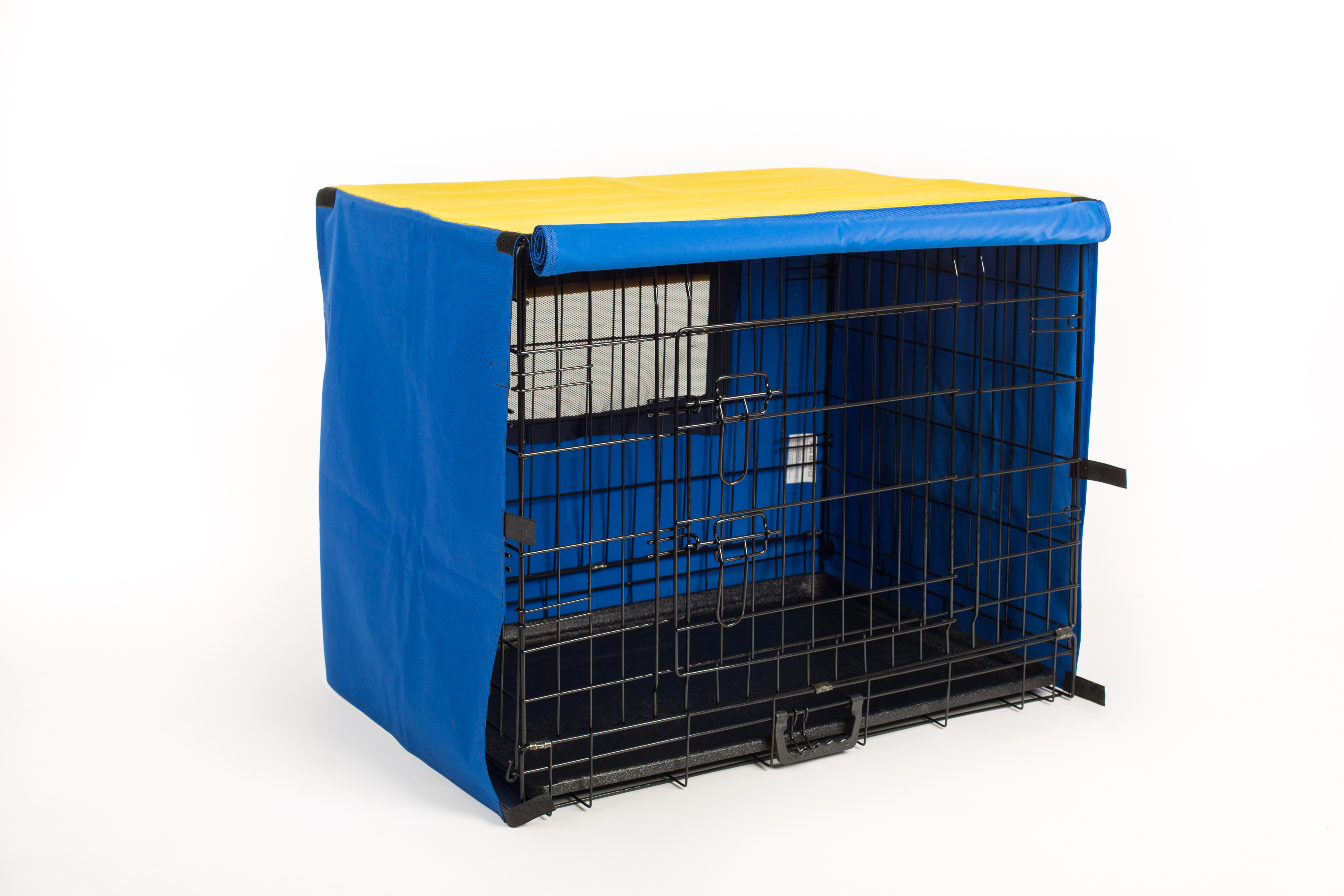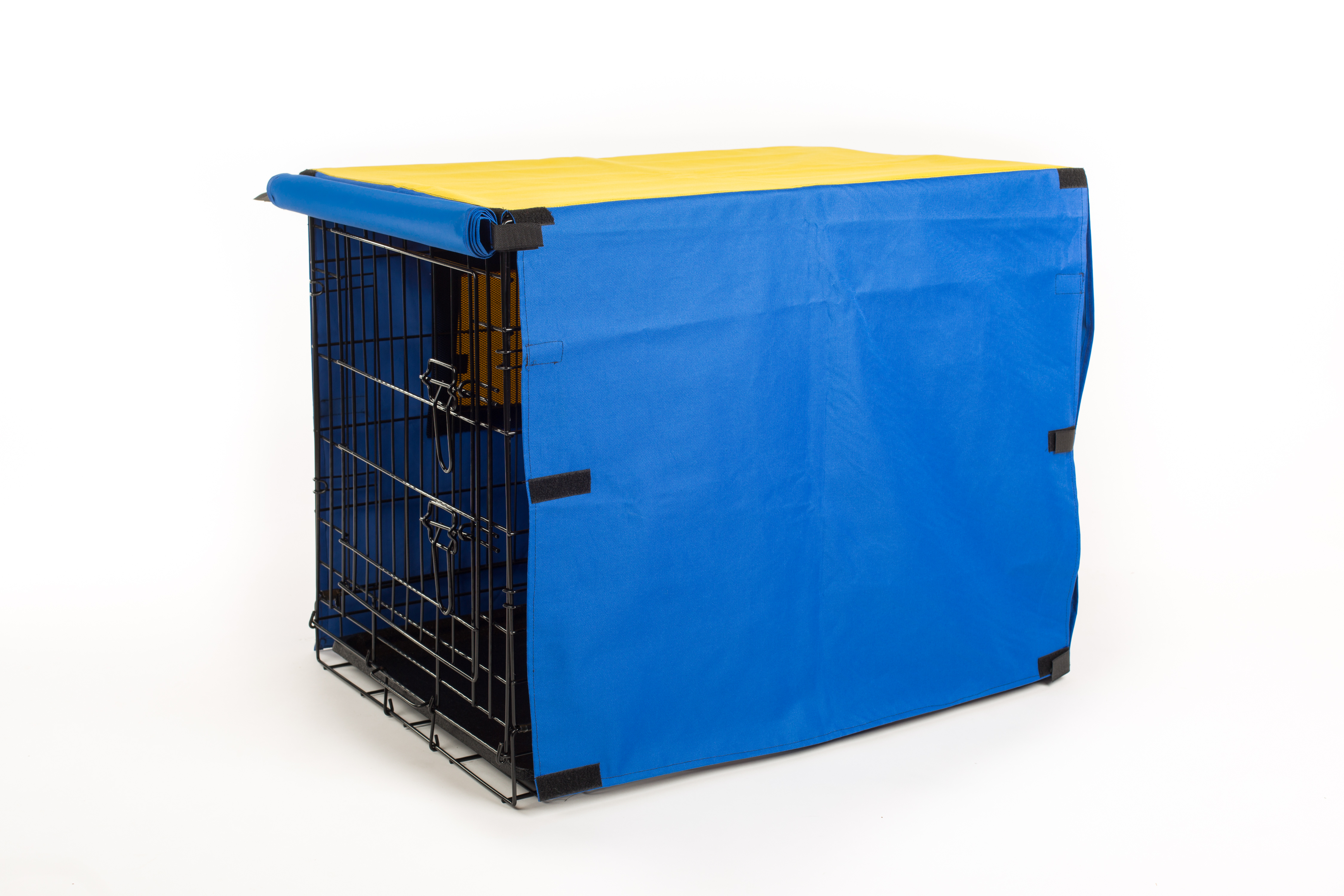 Potah na přepravní klec kombinace MODRÁ/ŽLUTÁ Velikost klecí: XS 45x33x40,5cm