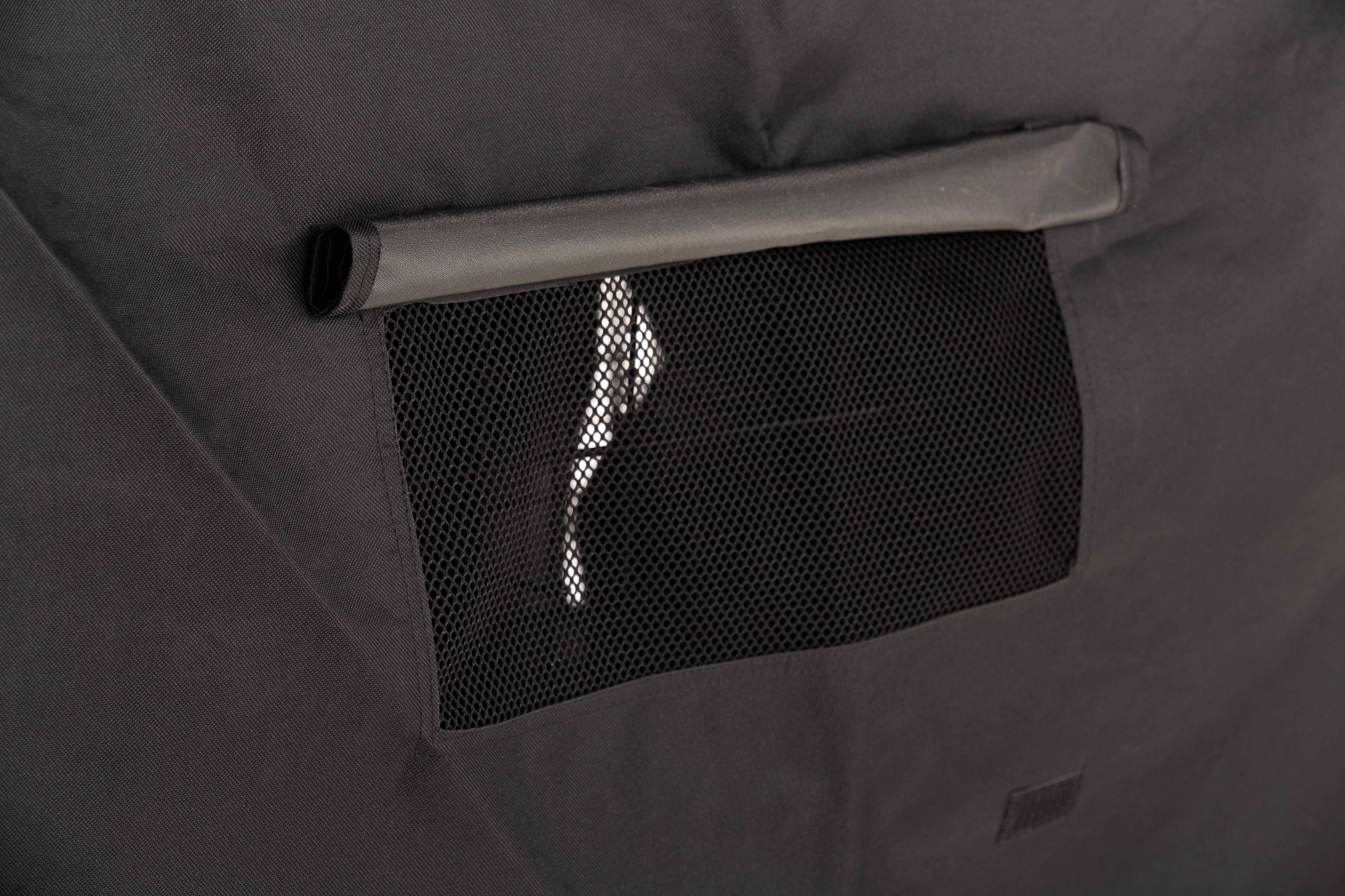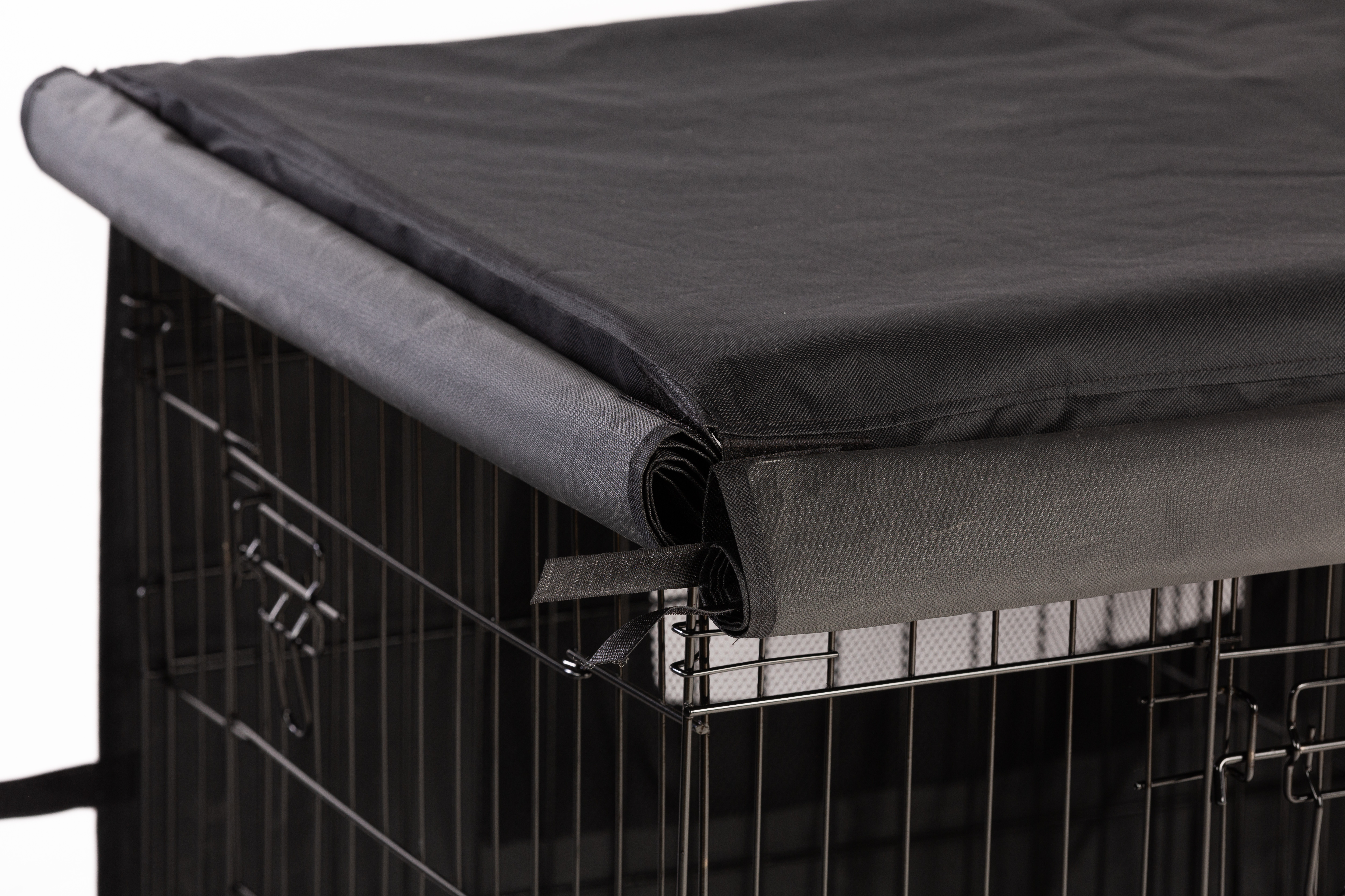 Potah na přepravní klec. Důmyslná konstrukce pro variabilní použití umožňuje zakrytí jednotlivých stran klece - z boku boční kapsa na vše potřebné a na další straně okénko, které je možné otevřít/zavřít. Z pevného, nepromokavého materiálu a okénko na boku, vše z omyvatelného materiálu.