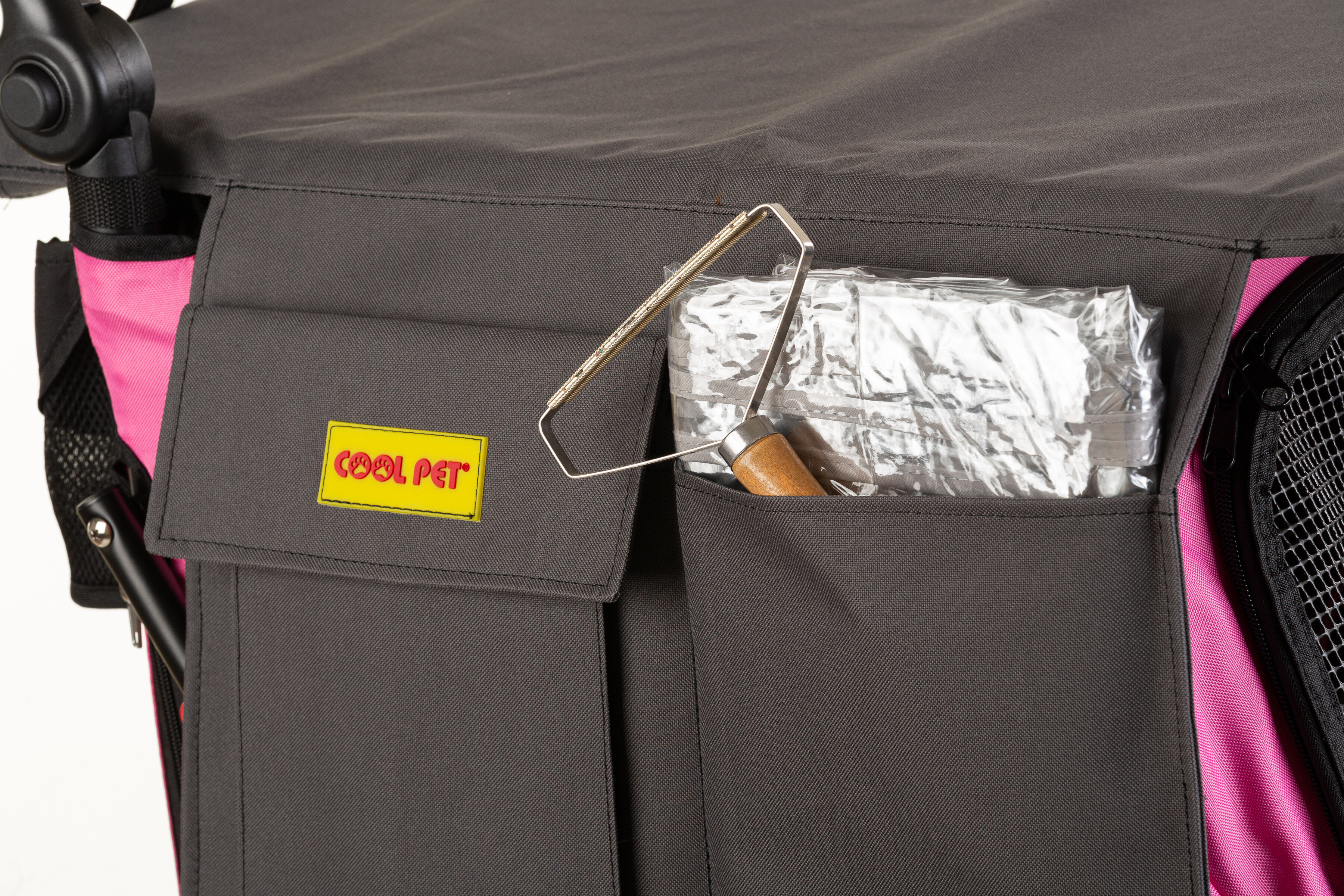 Připravili jsme pro vás novinku na českém trhu za zaváděcí cenu, ochranný potah s kapsami na upravovací stolek vozíku Petstro. Potah pasuje na všechny velikosti kočáru Petstro. Potah je z pevného textilu Oxford 600D, který je možný vyprat. Na každé straně jsou dvě kapsy, vždy jedna na uzavření na suchý zip a jedna volná. Kapsy jsou určeny na kartáče, spraye, nůžky, doklady a další potřebné přípravky. Potah je na všechny tři velikosti Petstro vozíků (střední do 35kg, velký do 45kg a extra velký se čtyřmi koly do 55kg). Barva potahu je šedá, umíme vyrobit dalších 17 barev, stačí si vybrat a napsat do poznámky barvu. Foto vozíku Petstro je pouze ilustrativní, pro představu, produktem je potah stolu.