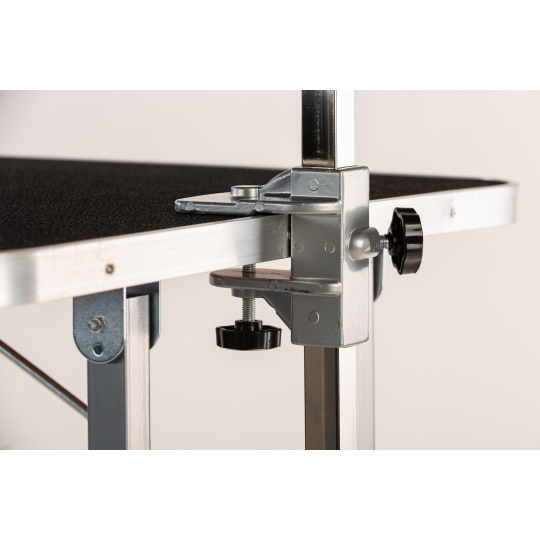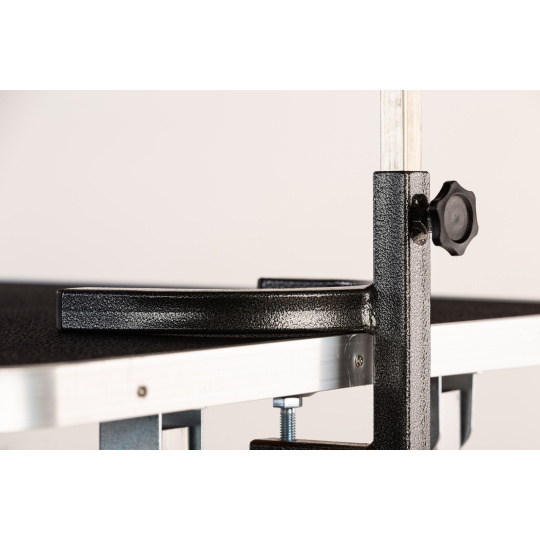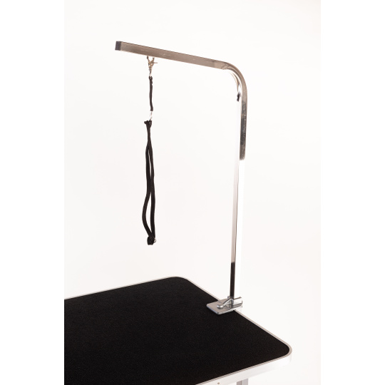 Rameno na trimovací stůl slouží k zajištění pejska, aby nechodil po stole nebo neseskočil ze stolu dolů, teleskop.