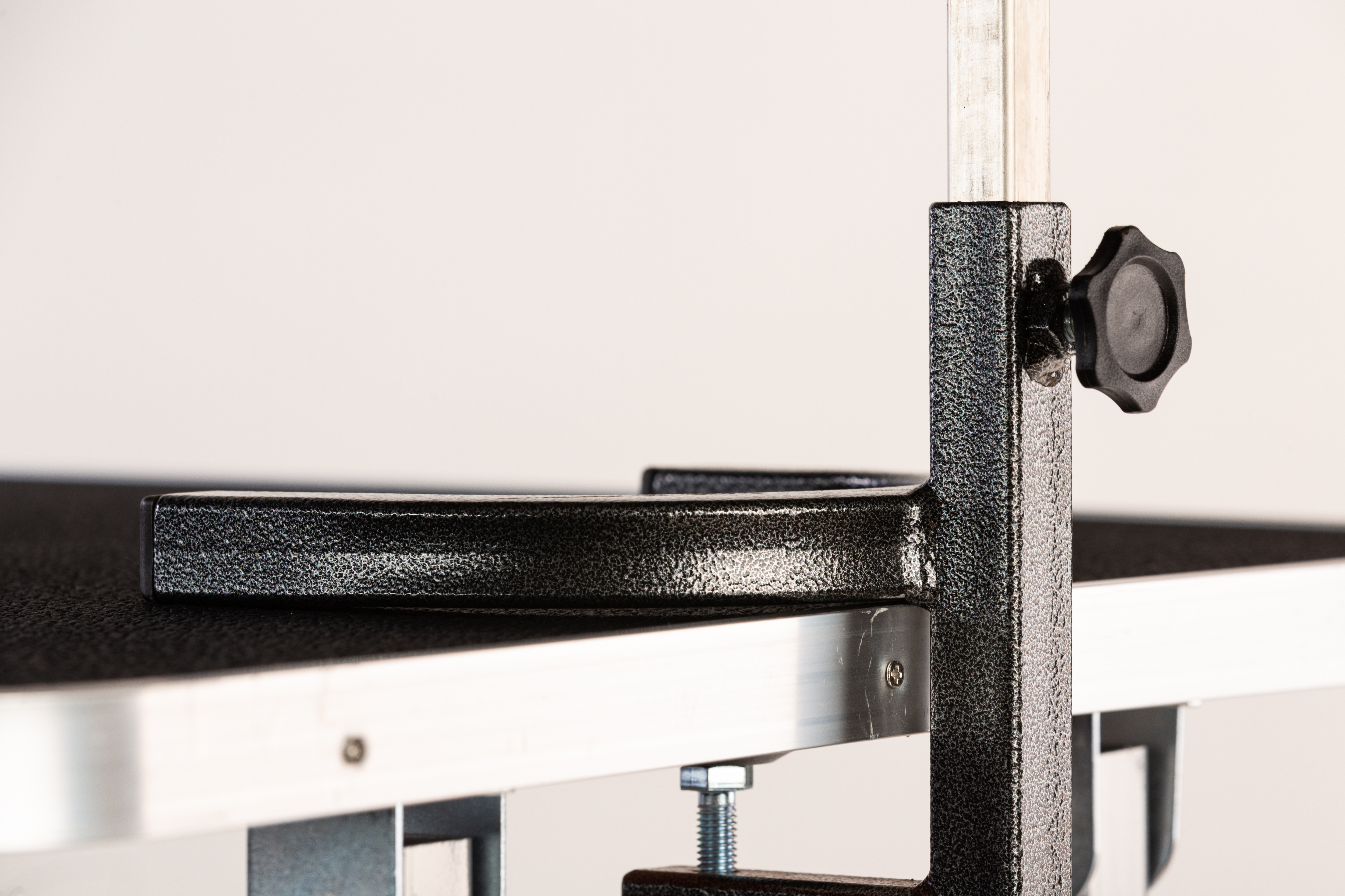Rameno na trimovací stůl slouží k zajištění pejska, aby nechodil po stole nebo neseskočil ze stolu dolů, teleskop.