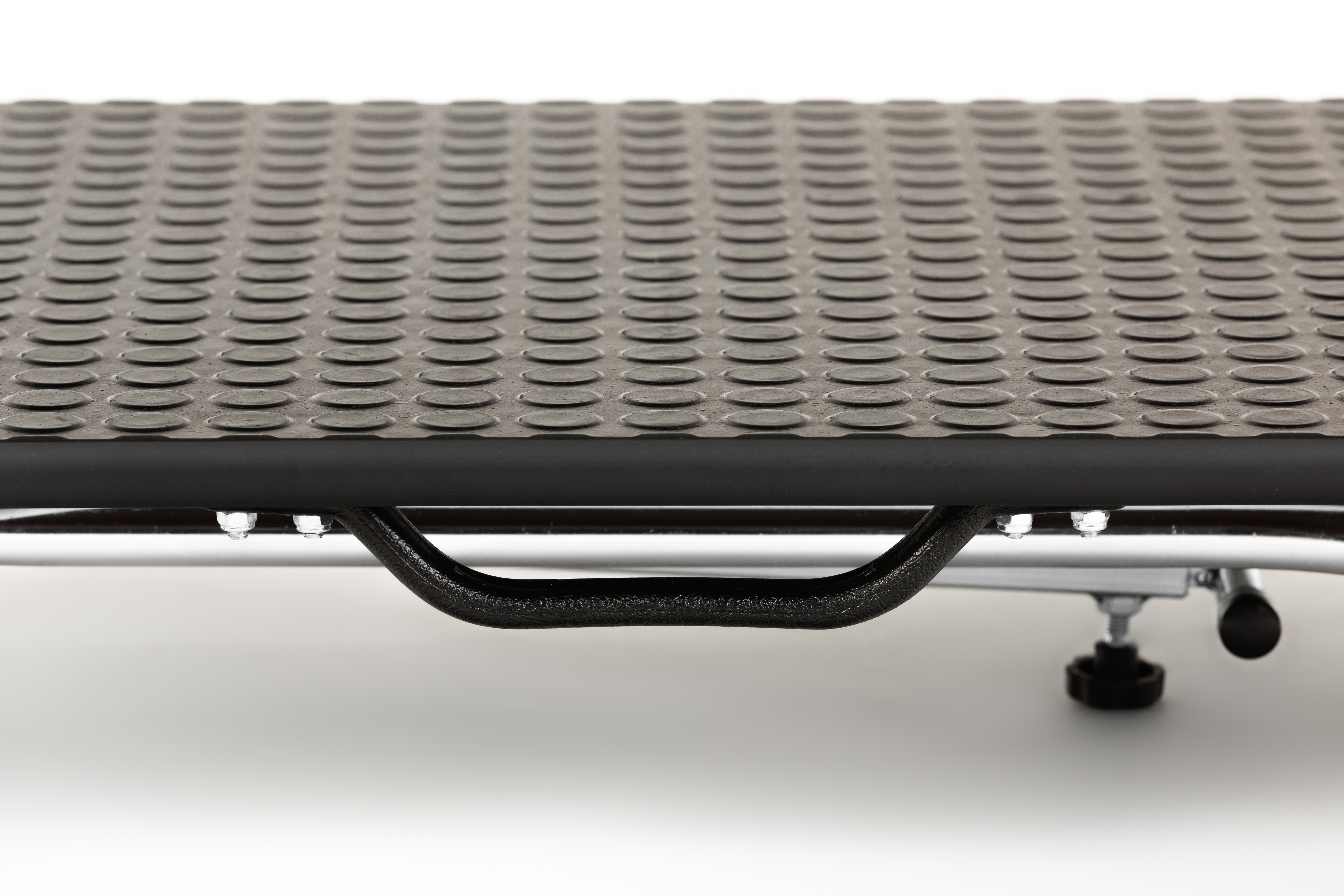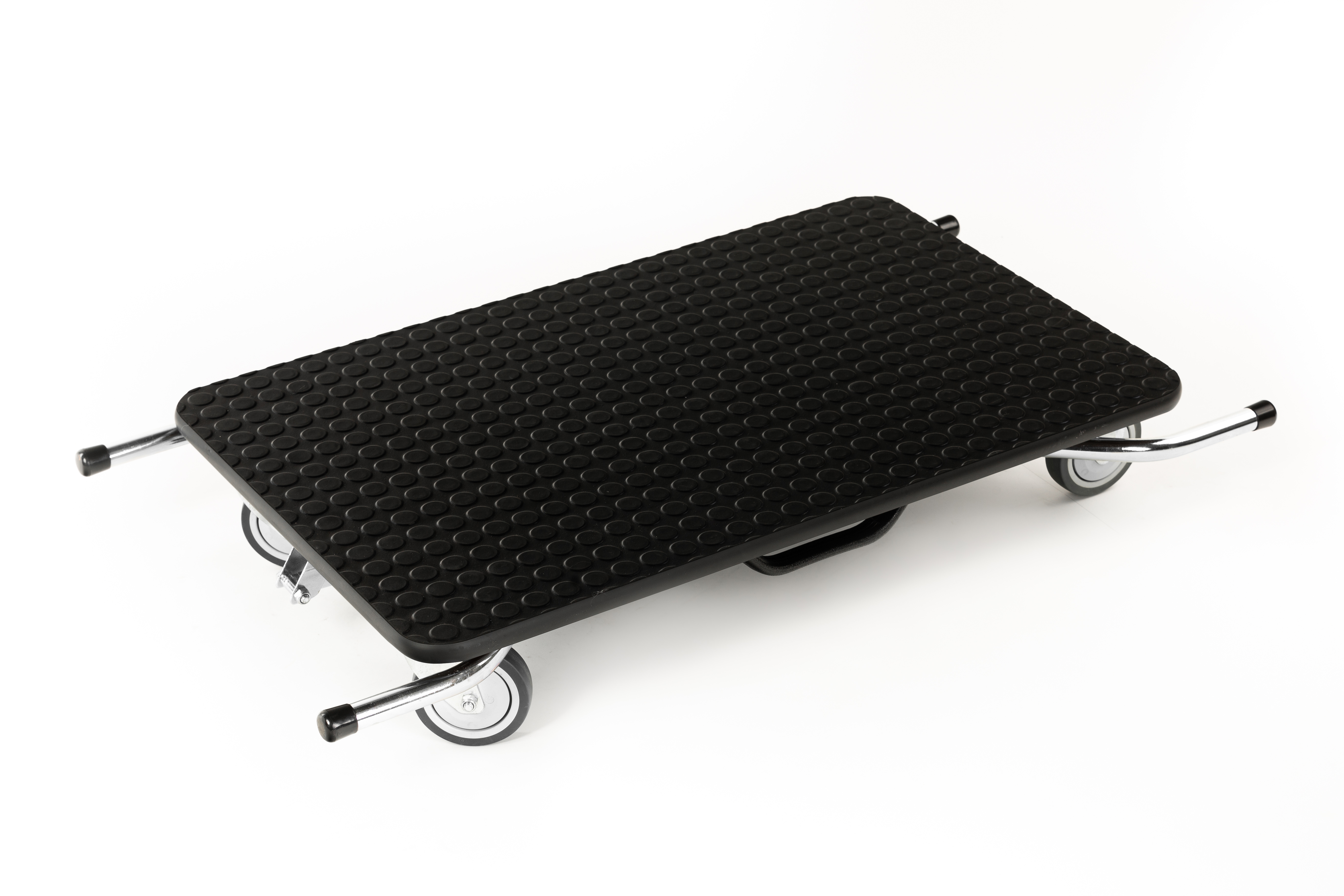 Chcete pohodlně upravit Vašeho čtyřnohého kamaráda? Pořiďte si stůl na úpravu psů je opatřen gumovými kolečky, průměr 10cm, uloženými v ložiskách, stůl lze jednoduše a rychle rozložit a složit jako vozík. Nosnost stolu je 65kg a vozíku 200kg. Vozík má teleskopickou oj na tažení dlouhou 55 - 106cm. Povrch stolu je potažen penízkovou protiskluznou gumou, ocelový rám s práškovým nástřikem, vyrobeno v Itálii. Hmotnost cca. 15kg, výška složeného 15cm a rozloženého postaveného stolu 79cm, rozměr pracovní plochy 80*50cm.