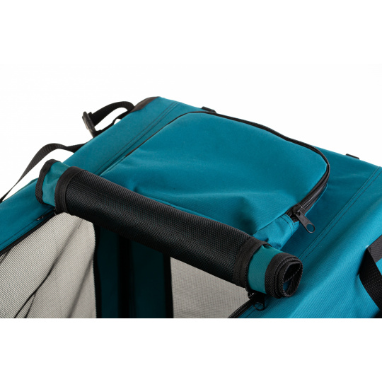 Skládací textilní domeček COOL PET PLUS, barva olejová, je kvalitní český výrobek s pevnou vnitřní ocelovou konstrukcí, velmi lehký na nošení a jednoduché skládání/rozkládání. Vnitřní rám z ocele zaručuje dlouhou životnost a ochranu vašeho psa. Úchyty sloužící k protažení bezpečnostními pásy zvyšují bezpečnost vašeho psa. Domeček může být stejně tak umístěn na zadních sedadlech. Speciální pevná tkanina, odolná síťovina je použita ve všech oknech a vchodech - jeden ze předu, druhý z boku. Vchody i okna je možné zatemnit roletkou ze stejného materiálu, jako je celý box. Zátěžové zipy zajišťují jednoduchou manipulaci a dlouhou trvanlivost. Vodě odolný základ chrání před vlhkosti např. z mokré trávy neprosákne dovnitř. Ideální na přepravu psů a koček do auta, na cesty, výstavy, dovolenou i na domácí použití. Složený box je umístěn v tašce na přenos. Doporučujeme dokoupit matraci, podložku v sekci matrace pro psy, která je měkká, pohodlná, 3 cm nebo 5cm silná, může se vysvléci a prát, povrch je vodě odolný, různé barvy a materiály - eko kůže, Oxford materiál a další, kvalitní výrobek COOL PET.