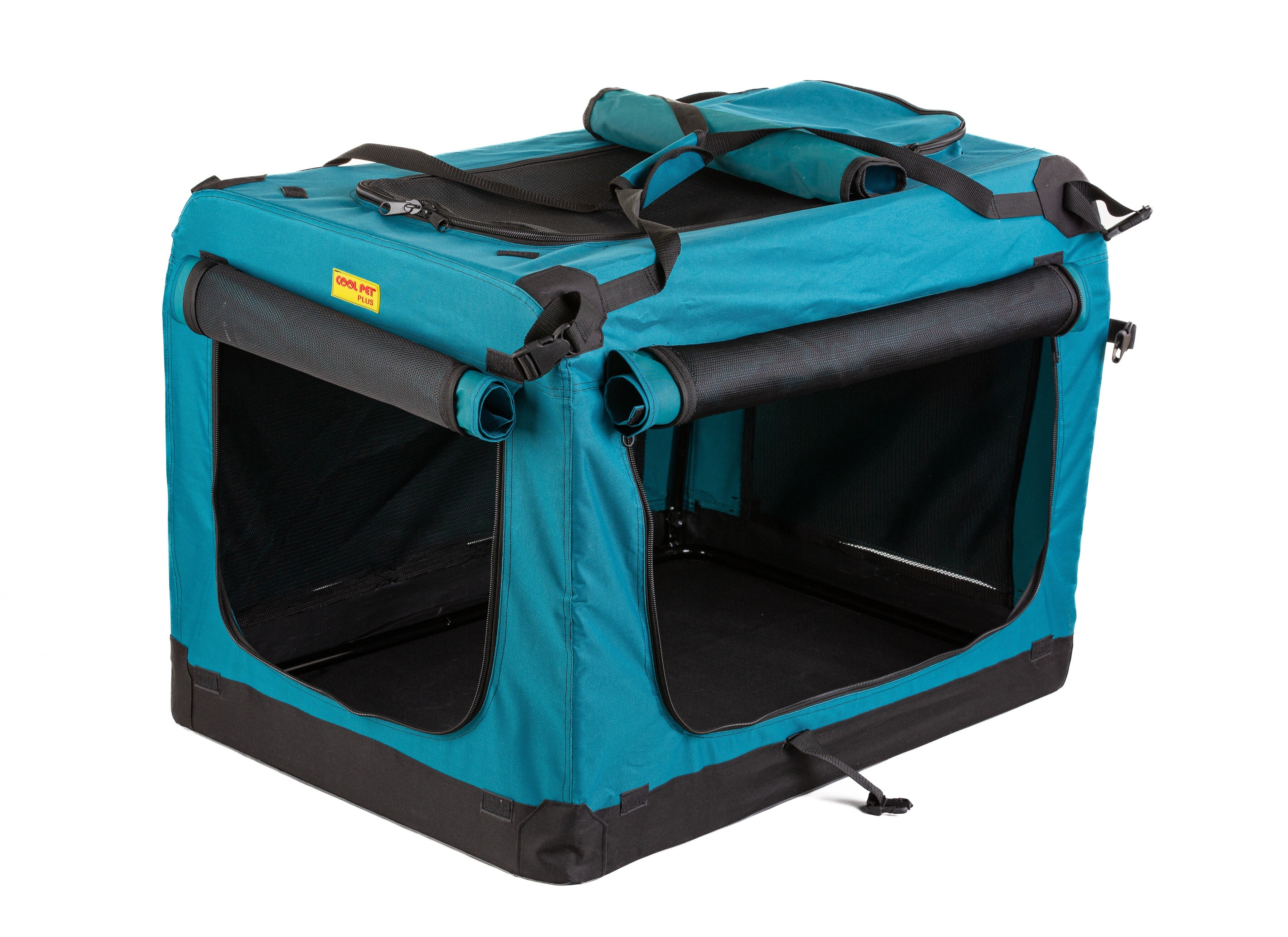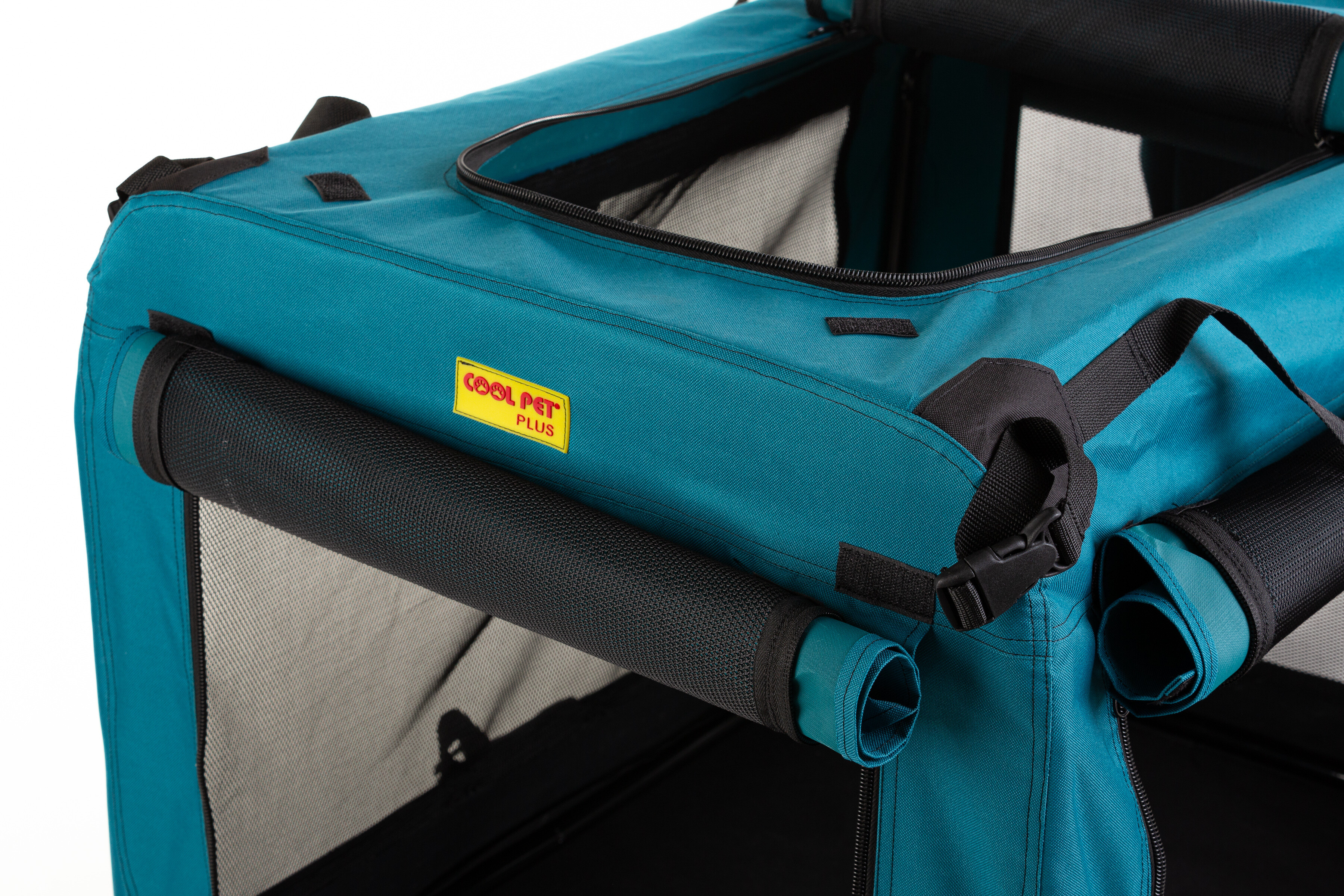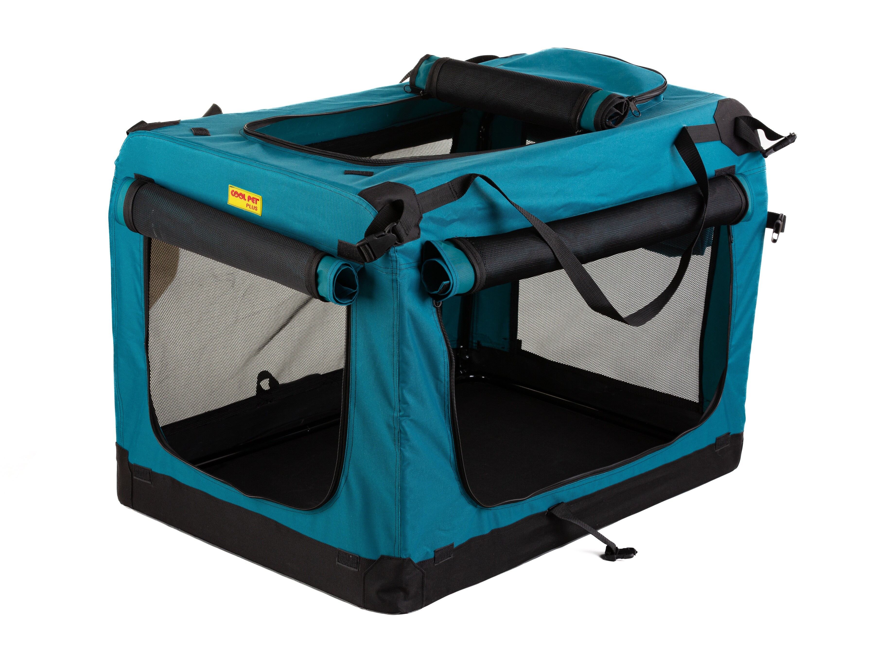Skládací textilní domeček COOL PET PLUS, barva olejová, je kvalitní český výrobek s pevnou vnitřní ocelovou konstrukcí, velmi lehký na nošení a jednoduché skládání/rozkládání. Vnitřní rám z ocele zaručuje dlouhou životnost a ochranu vašeho psa. Úchyty sloužící k protažení bezpečnostními pásy zvyšují bezpečnost vašeho psa. Domeček může být stejně tak umístěn na zadních sedadlech. Speciální pevná tkanina, odolná síťovina je použita ve všech oknech a vchodech - jeden ze předu, druhý z boku. Vchody i okna je možné zatemnit roletkou ze stejného materiálu, jako je celý box. Zátěžové zipy zajišťují jednoduchou manipulaci a dlouhou trvanlivost. Vodě odolný základ chrání před vlhkosti např. z mokré trávy neprosákne dovnitř. Ideální na přepravu psů a koček do auta, na cesty, výstavy, dovolenou i na domácí použití. Složený box je umístěn v tašce na přenos. Doporučujeme dokoupit matraci, podložku v sekci matrace pro psy, která je měkká, pohodlná, 3 cm nebo 5cm silná, může se vysvléci a prát, povrch je vodě odolný, různé barvy a materiály - eko kůže, Oxford materiál a další, kvalitní výrobek COOL PET.