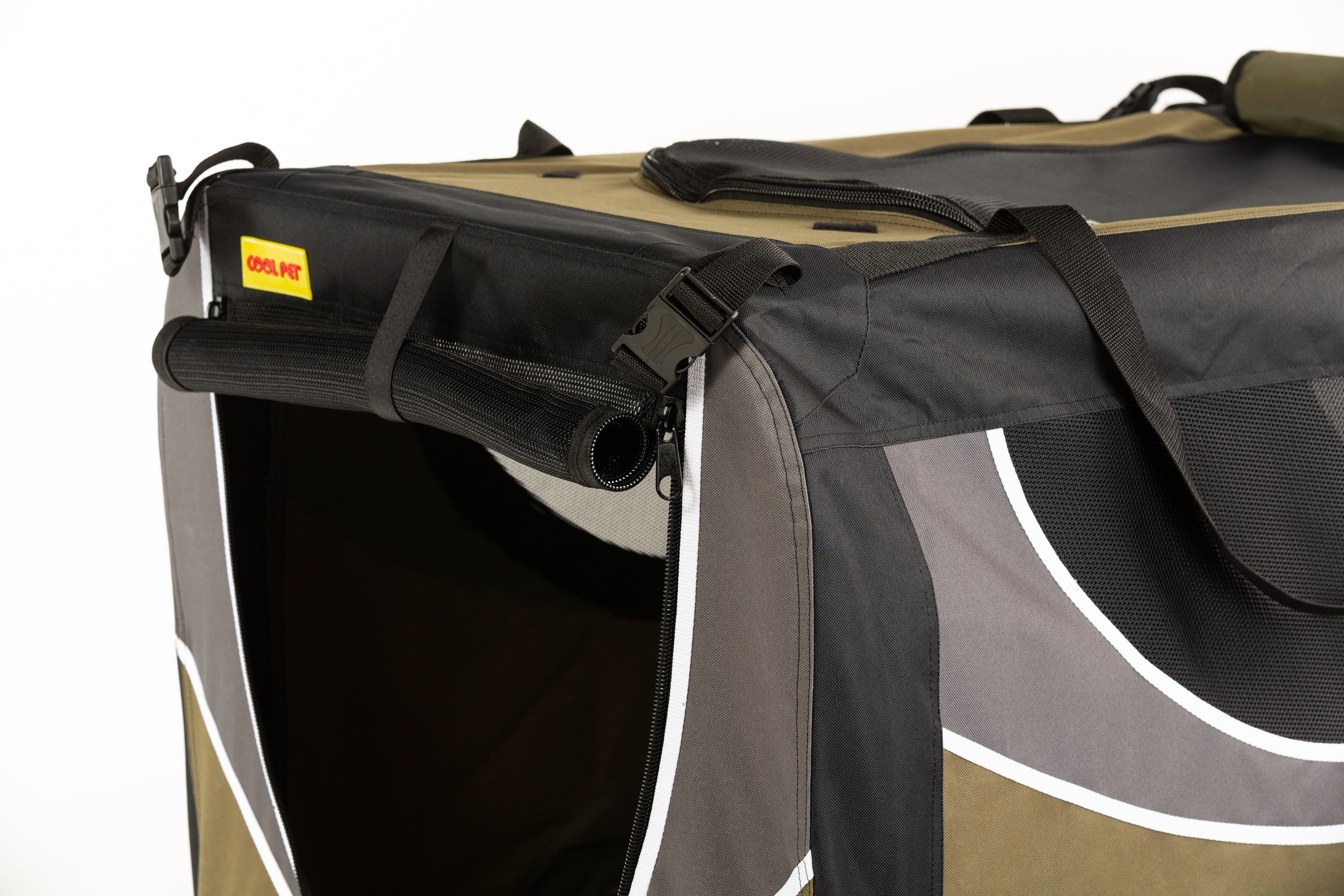 Cestujte bezpečně a pohodlně s pejskem nebo kočičkou. Zamezte zranění nebo pokutě za nezajištění Vašeho čtyřnohého kamaráda. Podívejte se v galerii na video, jak jednoduše rozložit a složi kennelku pro domácího mazlíčka. Box pohodlně uchytíte za ucha, která jsou na rozích nahoře boxu bezpečnostním pásem nebo řemenem apod.. Skládací textilní domeček COOL PET s pevnou vnitřní ocelovou konstrukcí, velmi lehký na nošení a jednoduché skládání/rozkládání. Vnitřní rám z ocele zaručuje dlouhou životnost a ochranu vašeho psa. Úchyty sloužící k protažení bezpečnostními pásy zvyšují bezpečnost vašeho psa. Domeček může být stejně tak umístěn na zadních sedadlech. Speciální pevná tkanina, odolná síťovina je použita ve všech oknech a vchodu - jeden ze předu. Zátěžové zipy zajišťují jednoduchou manipulaci a dlouhou trvanlivost. Vodě odolný základ chrání před vlhkosti např. z mokré trávy neprosákne dovnitř. Ideální na přepravu psů a koček do auta, na cesty, výstavy, dovolenou i na domácí použití. Složený box je umístěn v tašce na přenos.