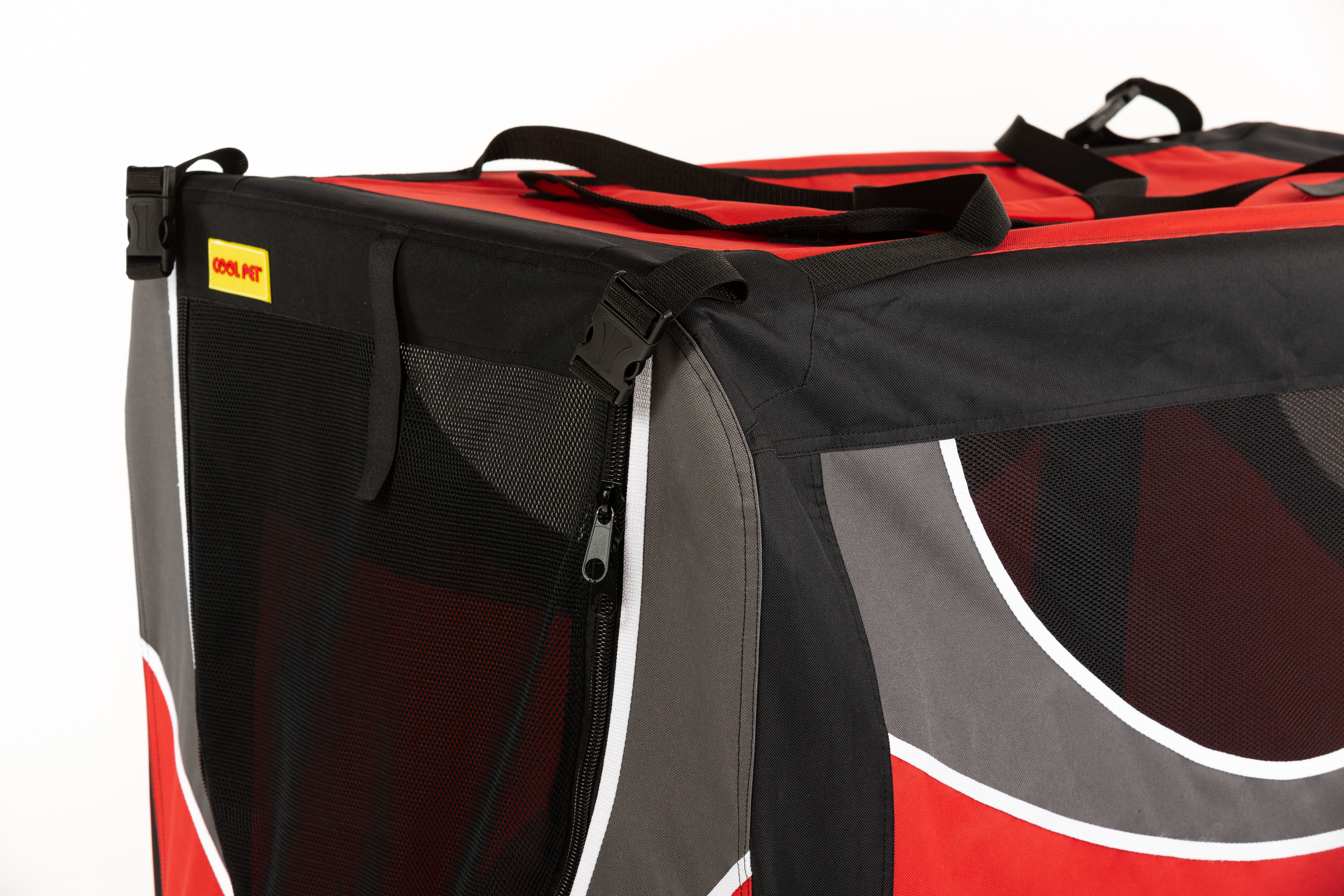 Cestujte bezpečně a pohodlně s pejskem nebo kočičkou. Zamezte zranění nebo pokutě za nezajištění Vašeho čtyřnohého kamaráda. Podívejte se v galerii na video, jak jednoduše rozložit a složi kenelku pro domácího mazlíčka. Box pohodlně uchytíte za ucha, která jsou na rozích nahoře boxu bezpečnostním pásem nebo řemenem apod.. Skládací textilní domeček COOL PET s pevnou vnitřní ocelovou konstrukcí, velmi lehký na nošení a jednoduché skládání/rozkládání. Vnitřní rám z ocele zaručuje dlouhou životnost a ochranu vašeho psa. Úchyty sloužící k protažení bezpečnostními pásy zvyšují bezpečnost vašeho psa. Domeček může být stejně tak umístěn na zadních sedadlech. Speciální pevná tkanina, odolná síťovina je použita ve všech oknech a vchodu - jeden ze předu. Zátěžové zipy zajišťují jednoduchou manipulaci a dlouhou trvanlivost. Vodě odolný základ chrání před vlhkosti např. z mokré trávy neprosákne dovnitř. Ideální na přepravu psů a koček do auta, na cesty, výstavy, dovolenou i na domácí použití. Složený box je umístěn v tašce na přenos.