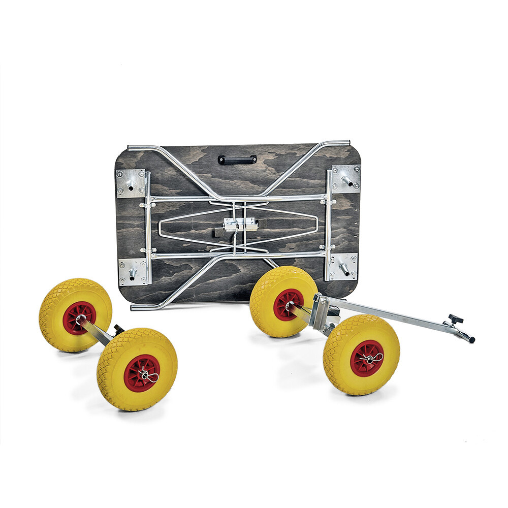 Stabilní, velký, pevný stůl na úpravu těžkých velkých plemen. Kola jsou pěnová a žlutá, rozměr stolu 90x60cm, výška stolu 78cm, celková váha 22kg. Stůl lze jednoduše a rychle rozložit a složit jako vozík. Robustní a stabilní, velmi kvalitní výrobek. Vyrobeno v Itálii.