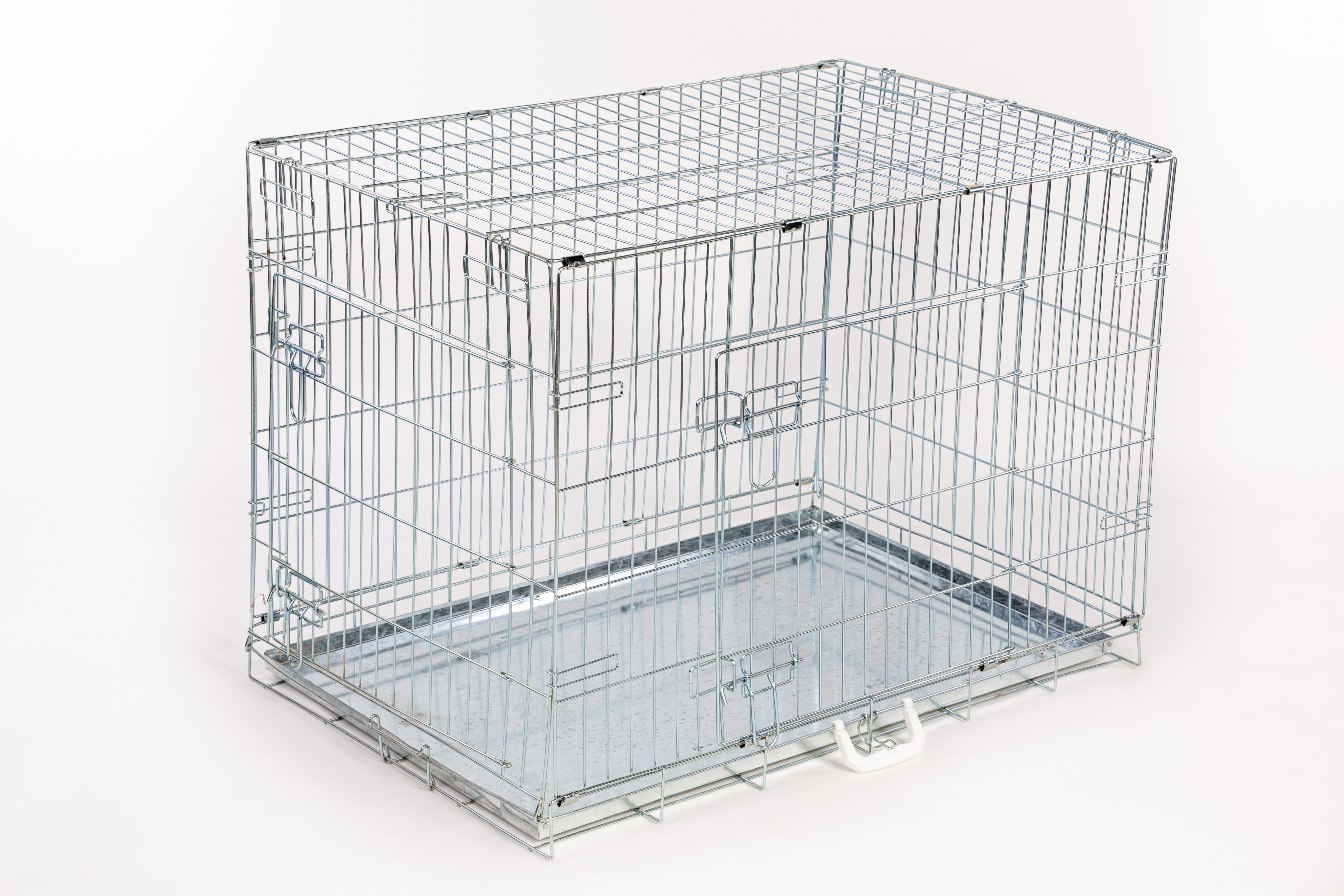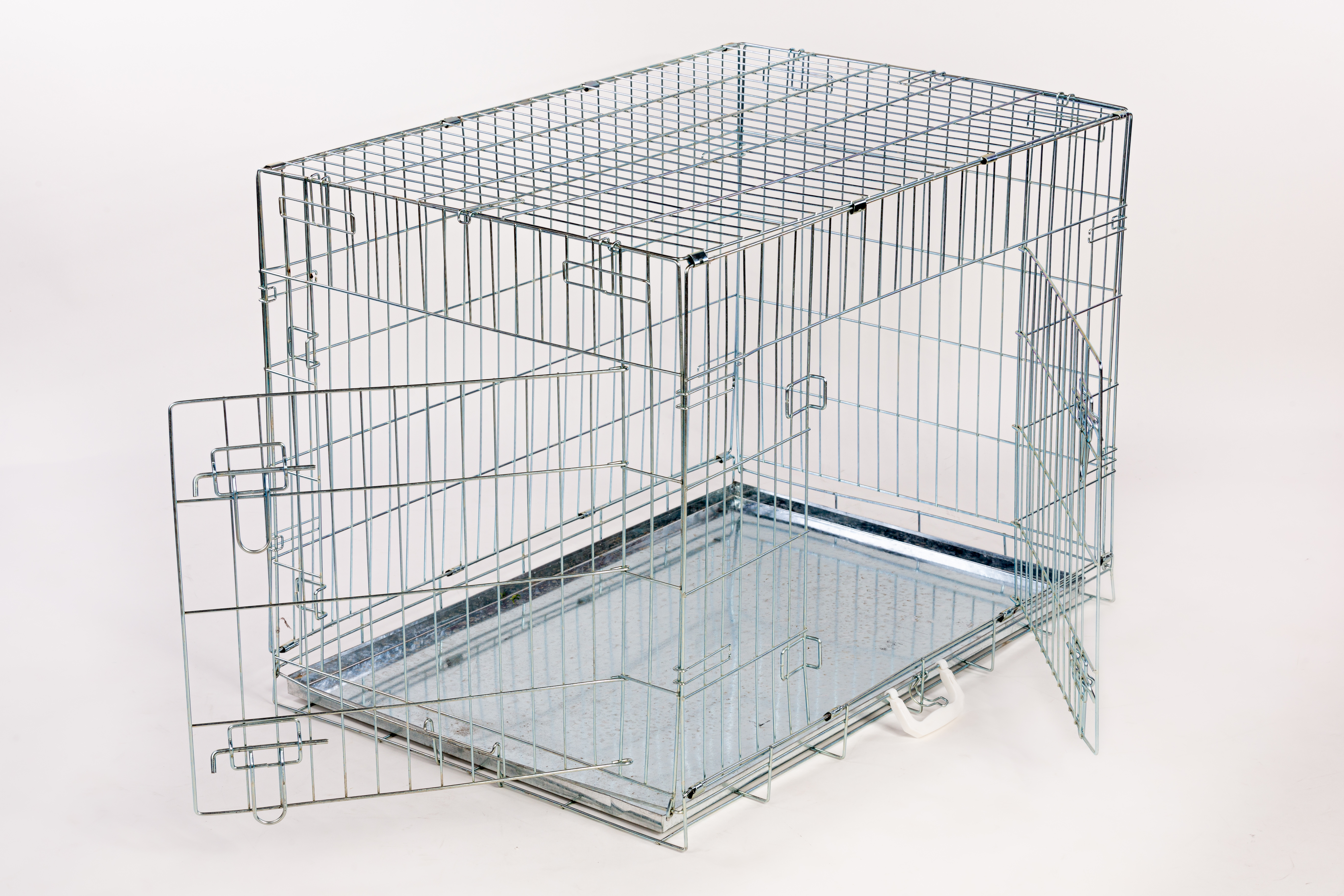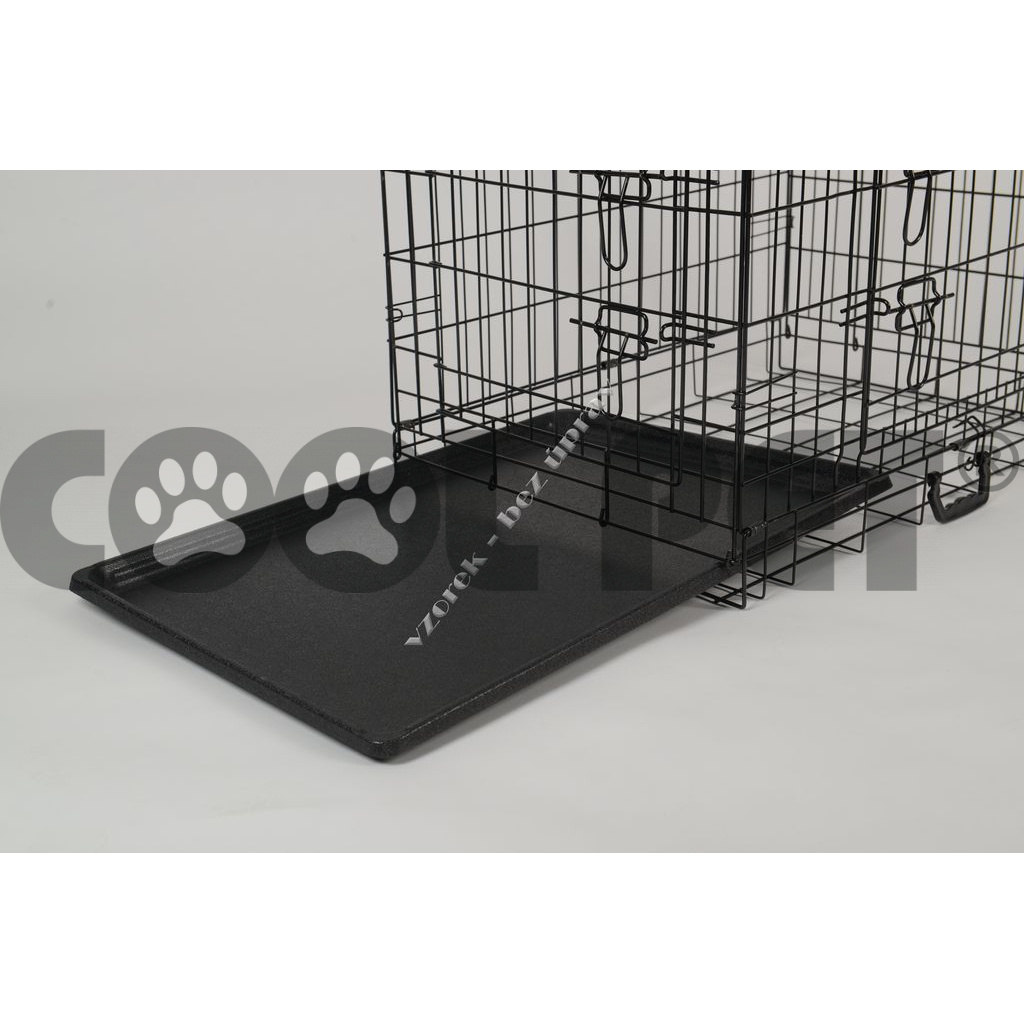 Přepravní či výstavní klec pro psy, železná s černým nátěrem, pevná. Vhodná také jako příležitostní domácí klec. Klec má dva vchody a snadno se složí a odnese.